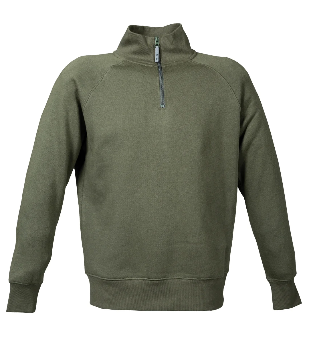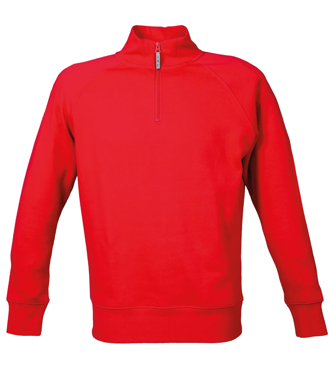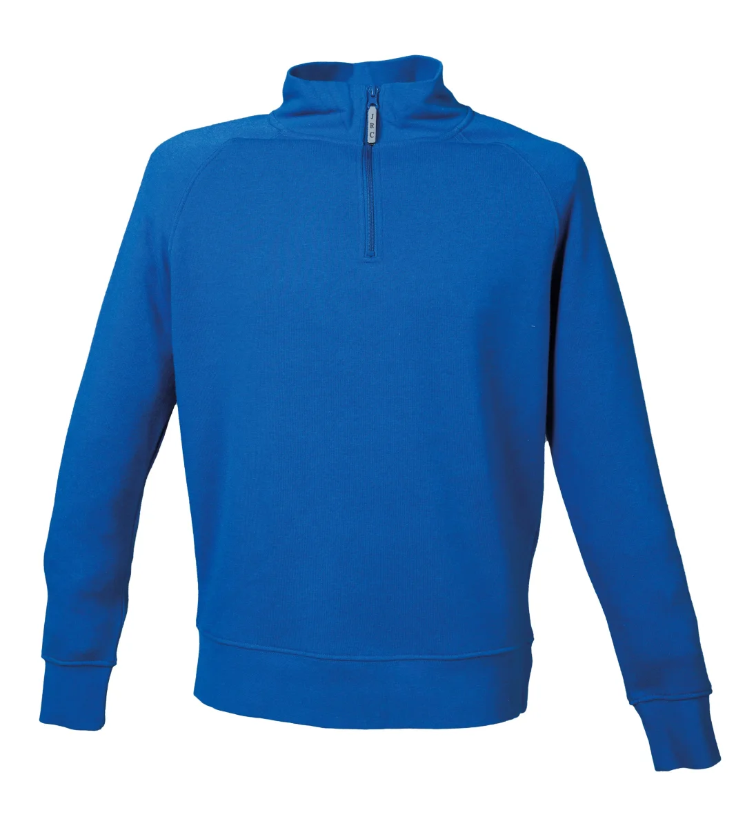 Felpa 80% cotone 20% poliestere – Zip corta con tirazip rifrangente – Collo a lupetto – Maniche raglan – Mezzaluna di rinforzo dietro il collo – Collo, polsini e fondo maglia in costina elasticizzata – Nastro di rinforzo interno collo – Cuciture ribattute