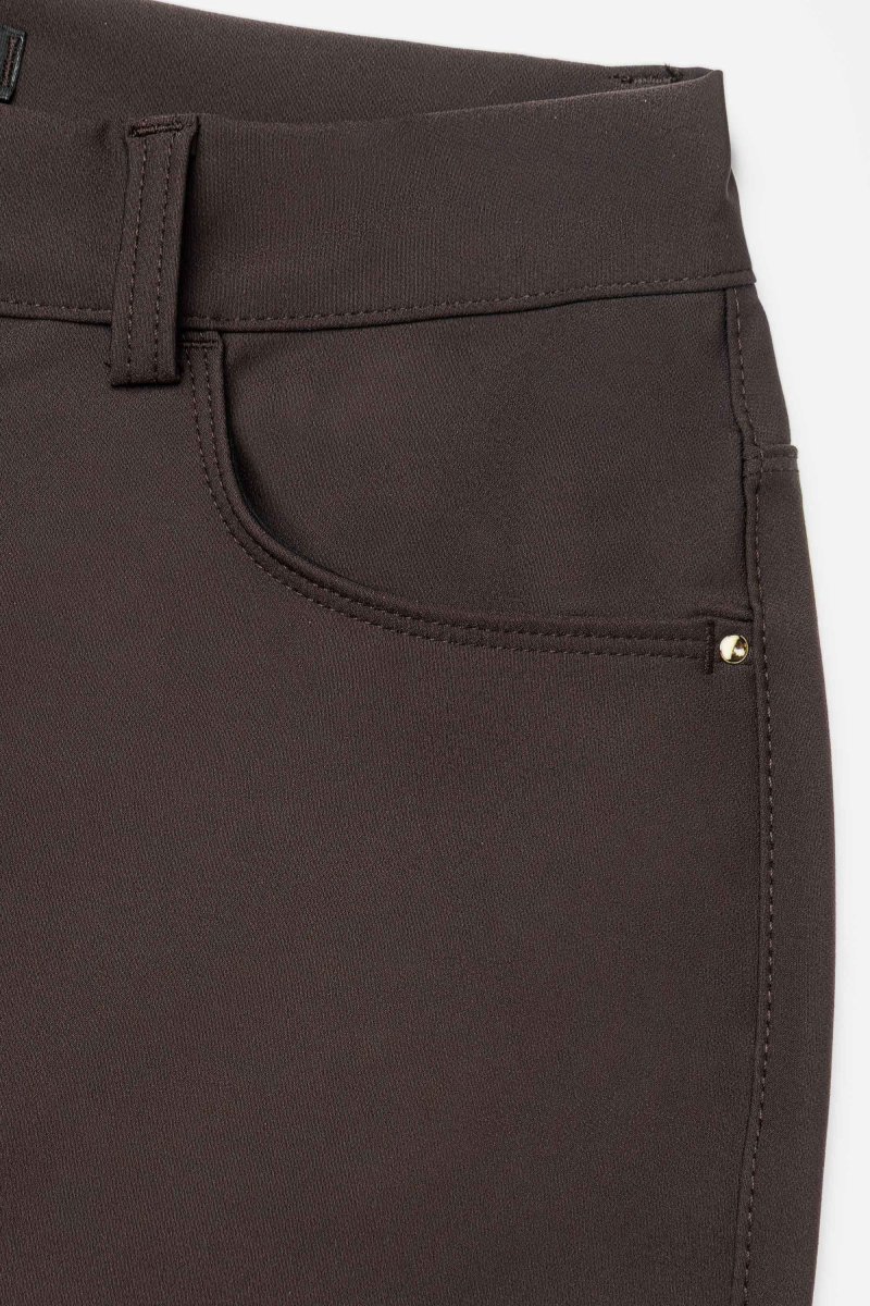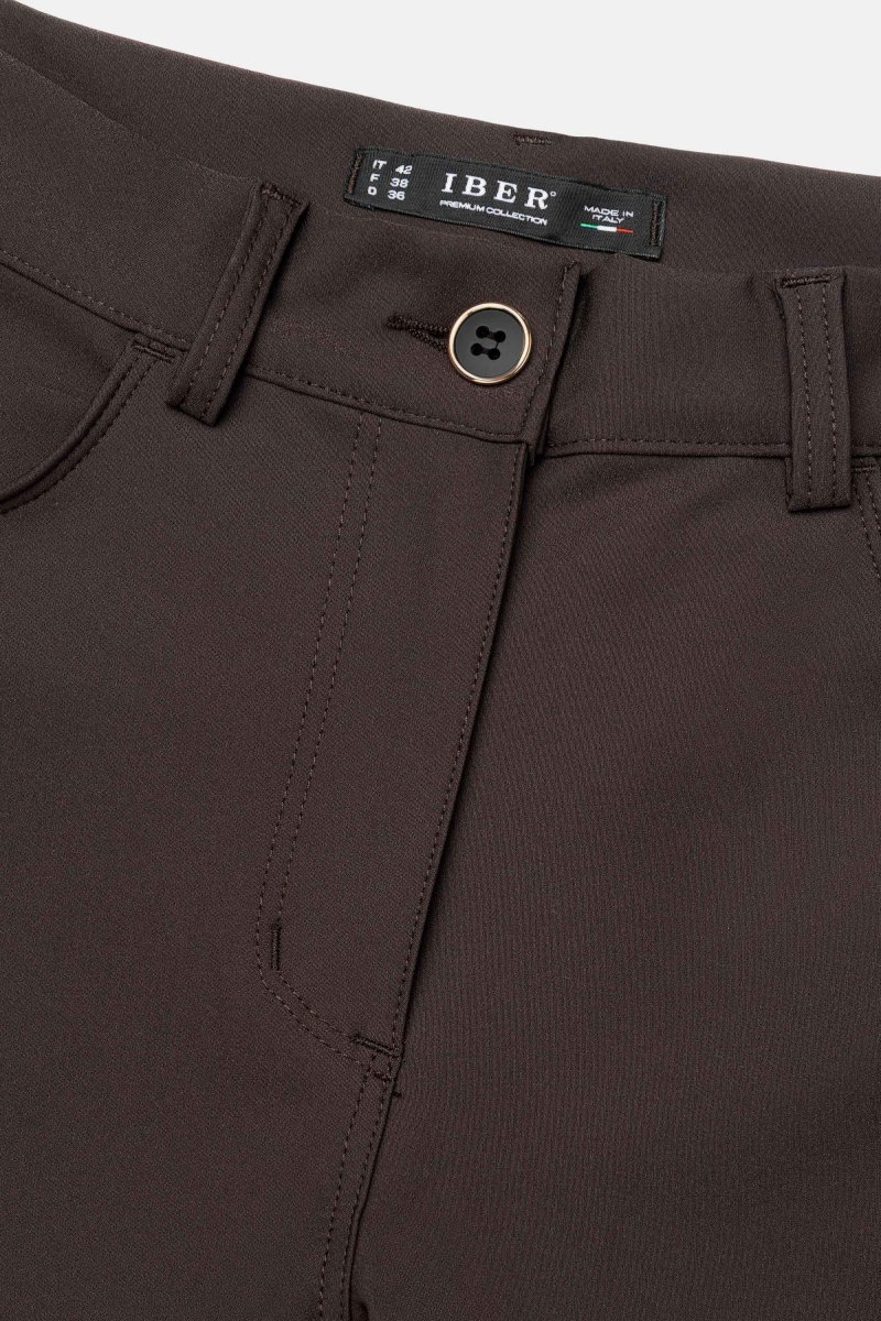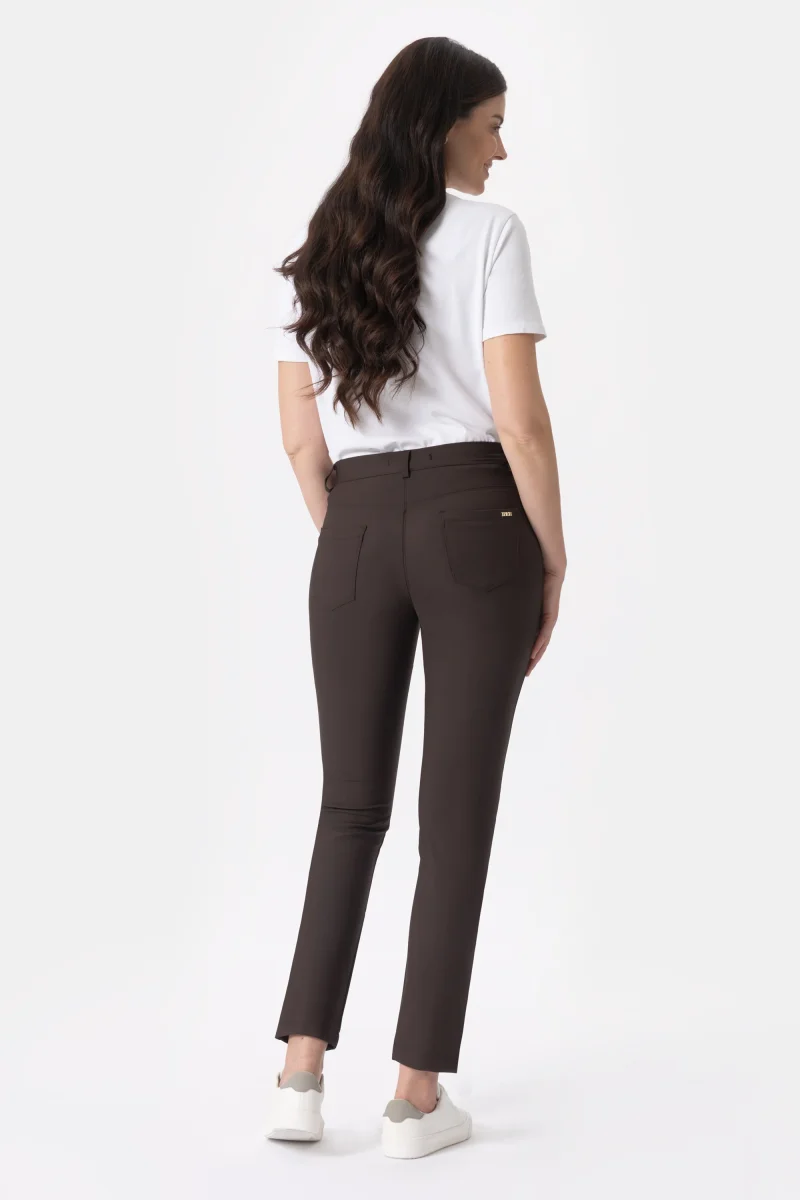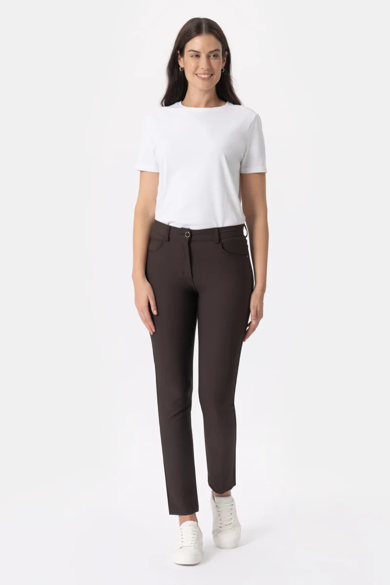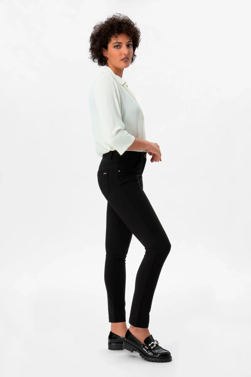 Pantalone in tessuto tecnico Bi-stretch con vestibilitร slim. Questo modello รจ costruito con vita regolare ed elasticizzata, dalla chiusura con zip e bottone. Il tessuto Bi-stretch permette la massima flessibilitร in tutte le direzioni offrendo adattabilitร e comfort. Dallโattitudine leisure e moderna, questo pantalone si adatta benissimo a situazioni quotidiane ma anche a look piรน formali e fashion. Un pantalone versatile, indispensabile nell’armadio di ogni donna.