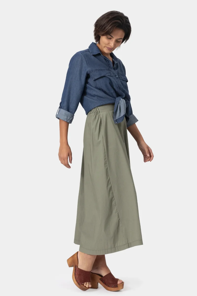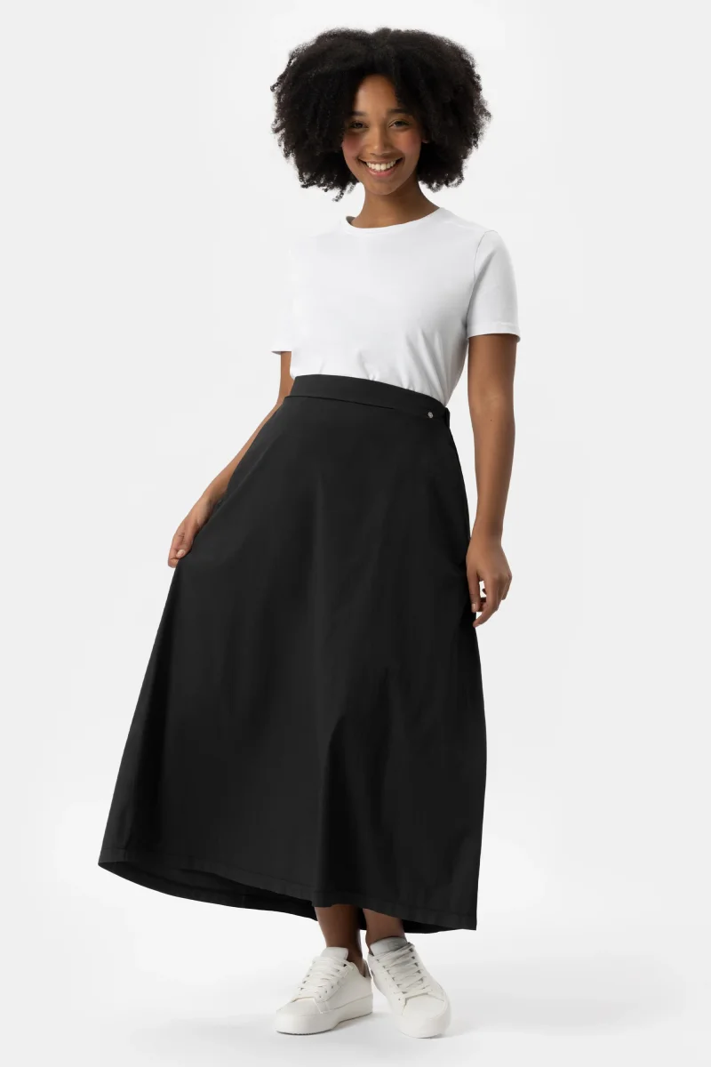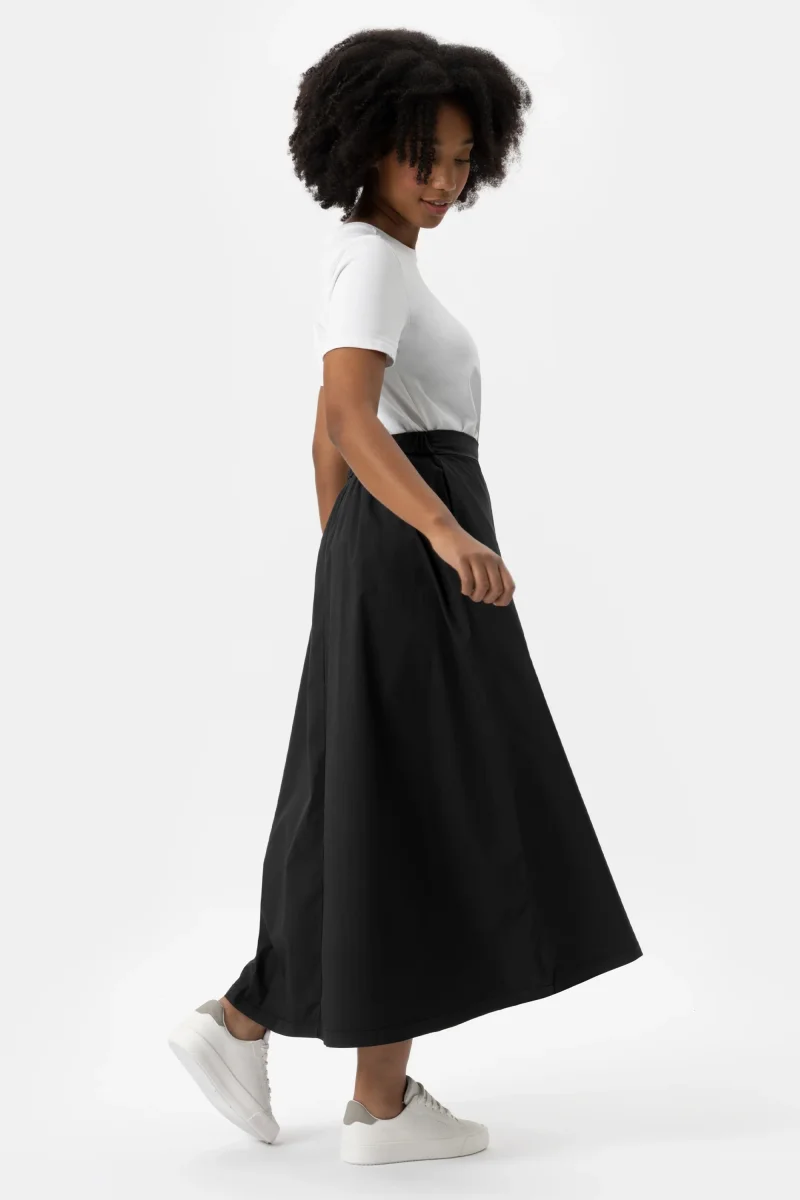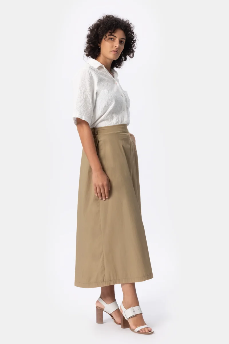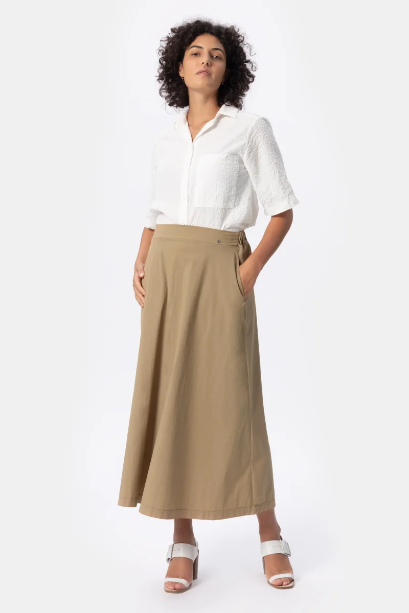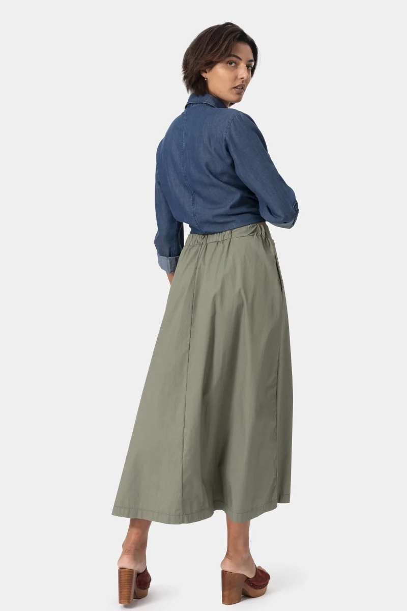 Gonna in cotone light stretch. Gonna ampia dalla vita media. Attuale dona comoditร e freschezza. Un capo morbido, quotidiano e fresco per le giornate piรน calde. Un must have per lโestate.
