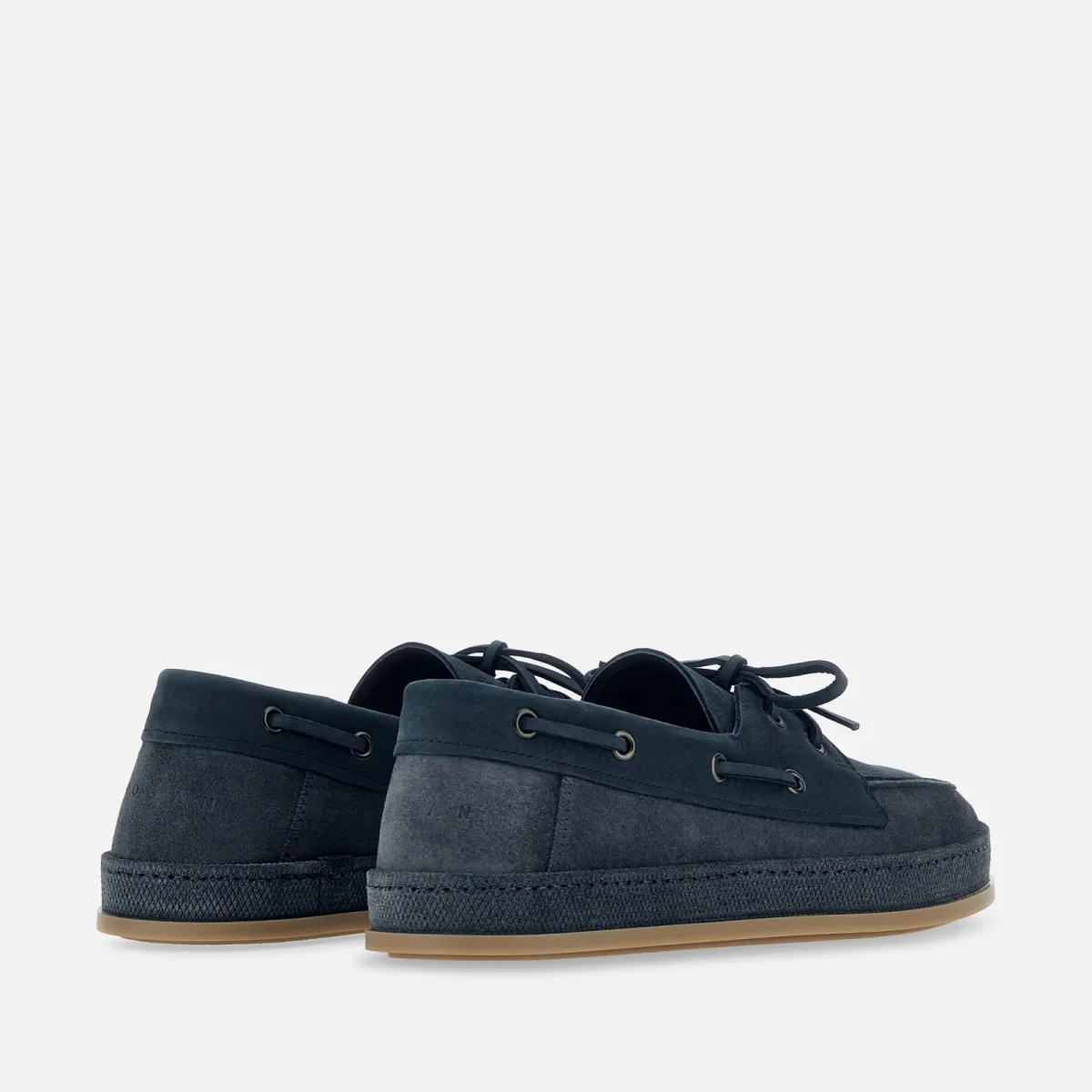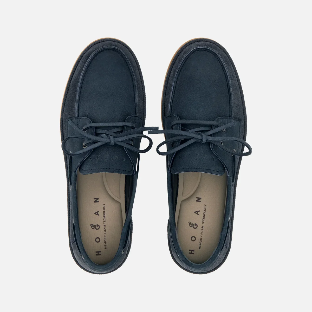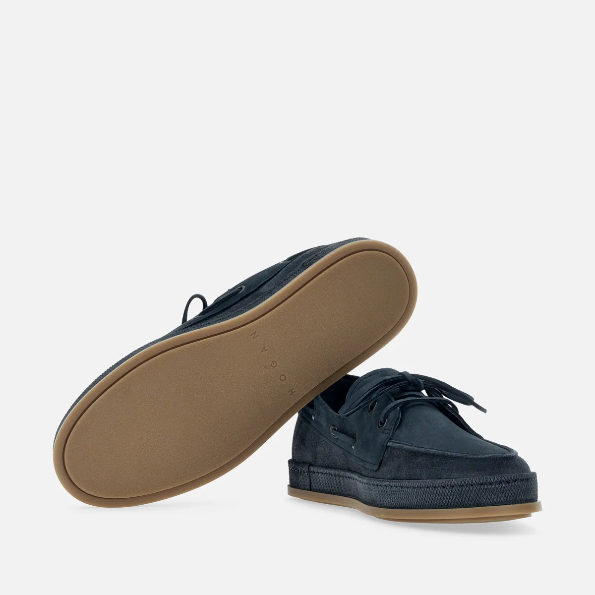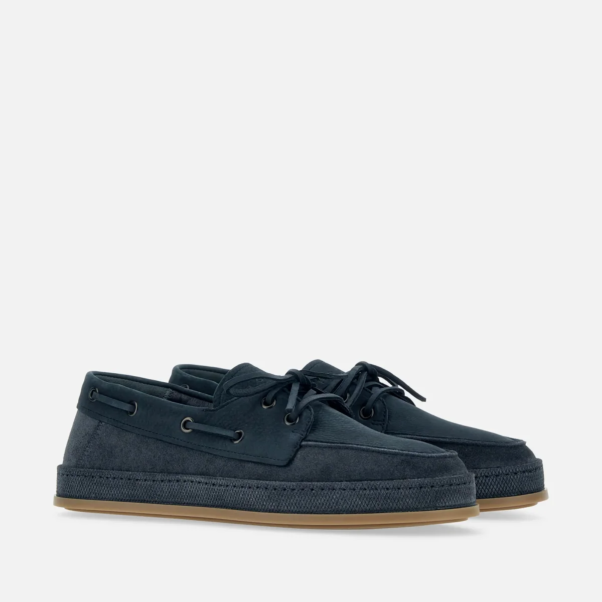 Con una suola unica rivestita e un look sobrio e sofisticato al tempo stesso, queste boat shoes in pelle scamosciata e nabuk sono caratterizzate da un bordo inferiore intonato alla tomaia. Dotate di una costruzione artigianale e un fondo in gomma leggera, presentano il tipico laccetto passante. Completate da una soletta in memory foam, sono un must-have urbano per i cultori del dettaglio.