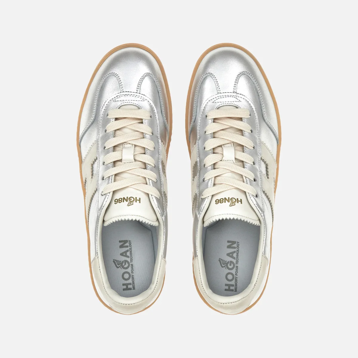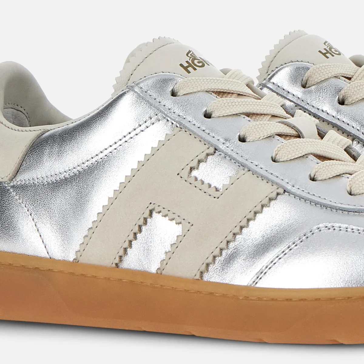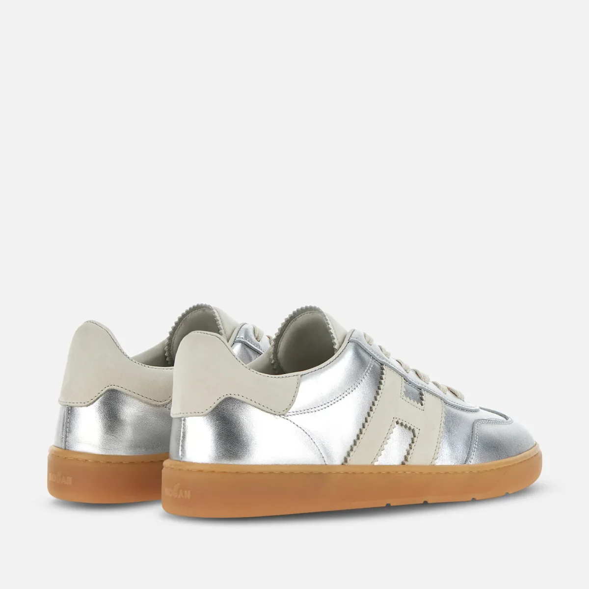Mix perfetto di elementi retrรฒ e linee contemporanee, le Sneakers Hogan Cool si caratterizzano per un look sobrio e raffinato. Dotata di una linguetta imbottita, la tomaia รจ qui realizzata in pelle metallizzata, con un’H laterale dentellata in nabuk. Reinterpretazione dello storico modello H327, la suola richiama il monogramma obliquo sul battistrada. La soletta in memory foam assicura una calzata ammortizzata.