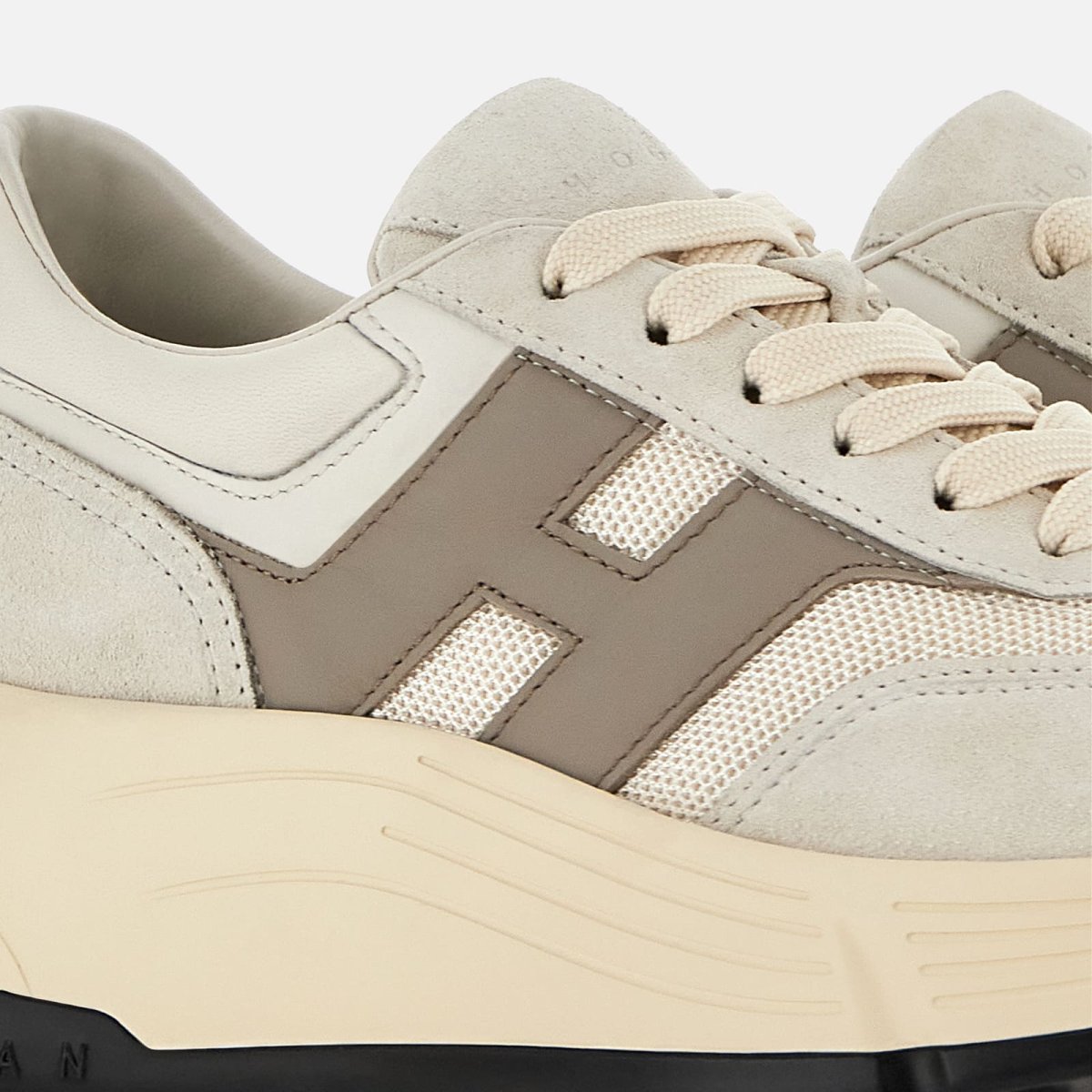 Le sneakers Hogan Hi-Fi declinano al femminile la suola Hyperlight con tacchetti, con un platform rialzato per elevazione ed eleganza. Rievocando l’iconografia sportiva degli anni ’80 con le finiture tecniche e la vocazione urbana, sono caratterizzate da una combinazione di linee morbide e scattanti. La tomaia รจ qui realizzata in pelle scamosciata e tessuto tecnico, con una maxi H laterale. Un energico modello athleisure, con una soletta in memory foam che assicura un extra comfort e una calzata ammortizzata.