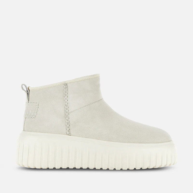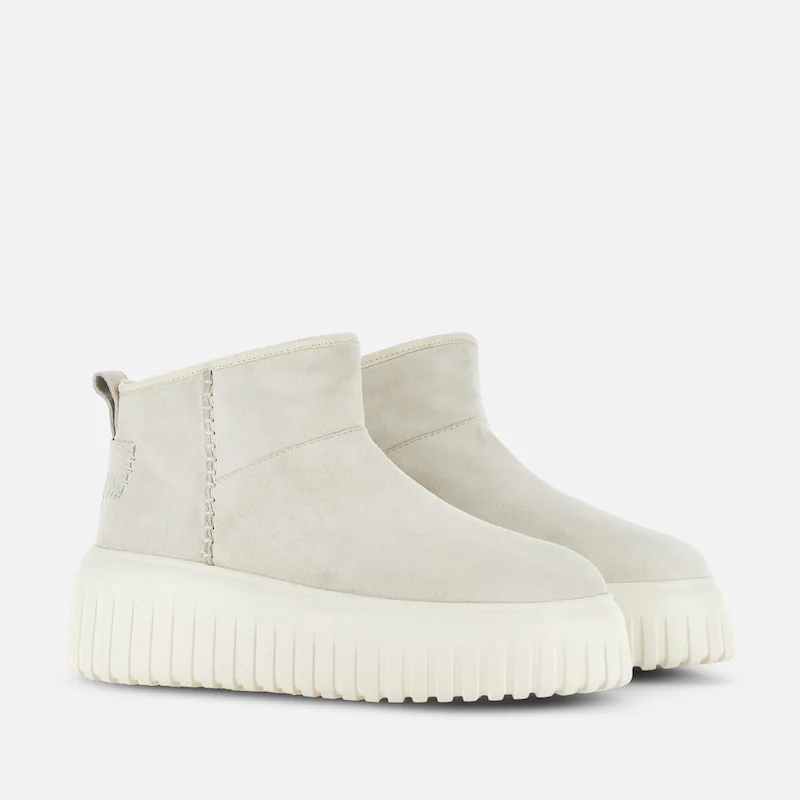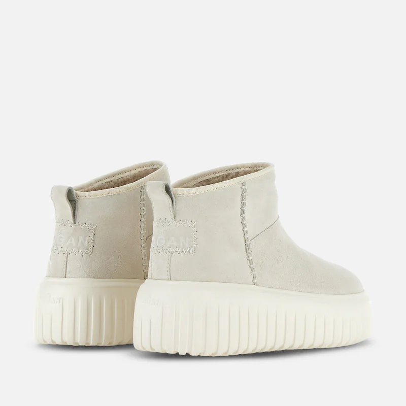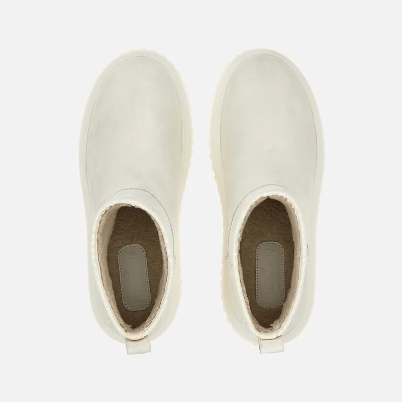 Caratterizzati da una suola extralight con righe verticali, gli stivaletti H-Stripes hanno una linea essenziale e versatile. Realizzati in morbida pelle scamosciata, con calda fodera in pile effetto shearling, presentano la patch Hogan sul tallone, con impunture a vista dal gusto artigianale.