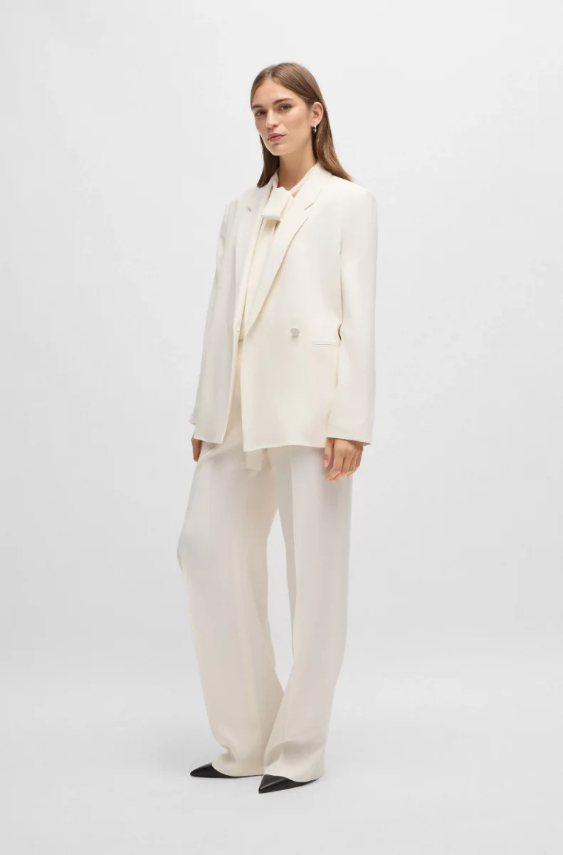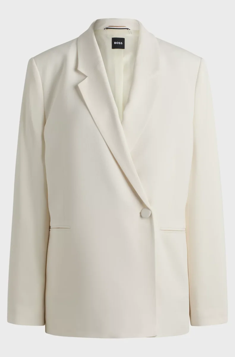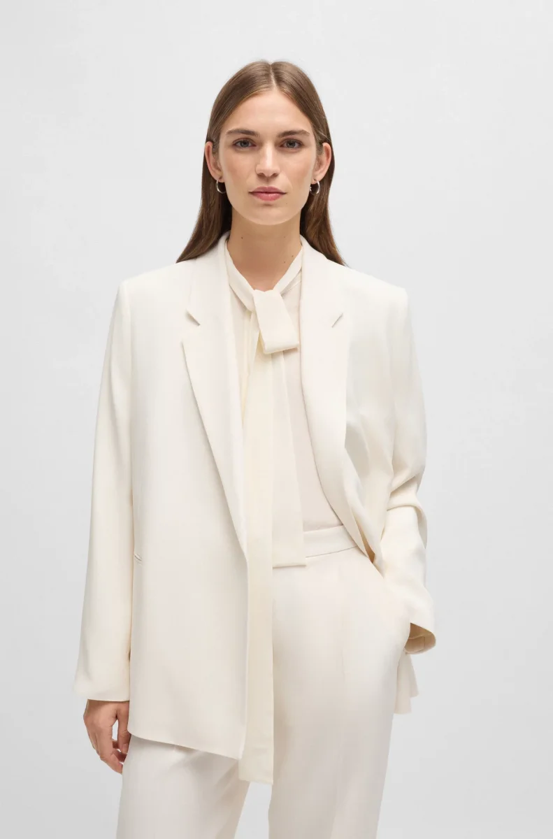 Questo capo realizzato in tessuto opaco รจ rifinito con un bottone originale e dettagli a contrasto tono su tono sulle braccia. Questo prodotto รจ realizzato con fibre di cellulosa, ottenute da legno grezzo naturale proveniente da foreste gestite in modo sostenibile. Collaboriamo con organizzazioni esterne per garantire il rispetto delle foreste vergini e a rischio.