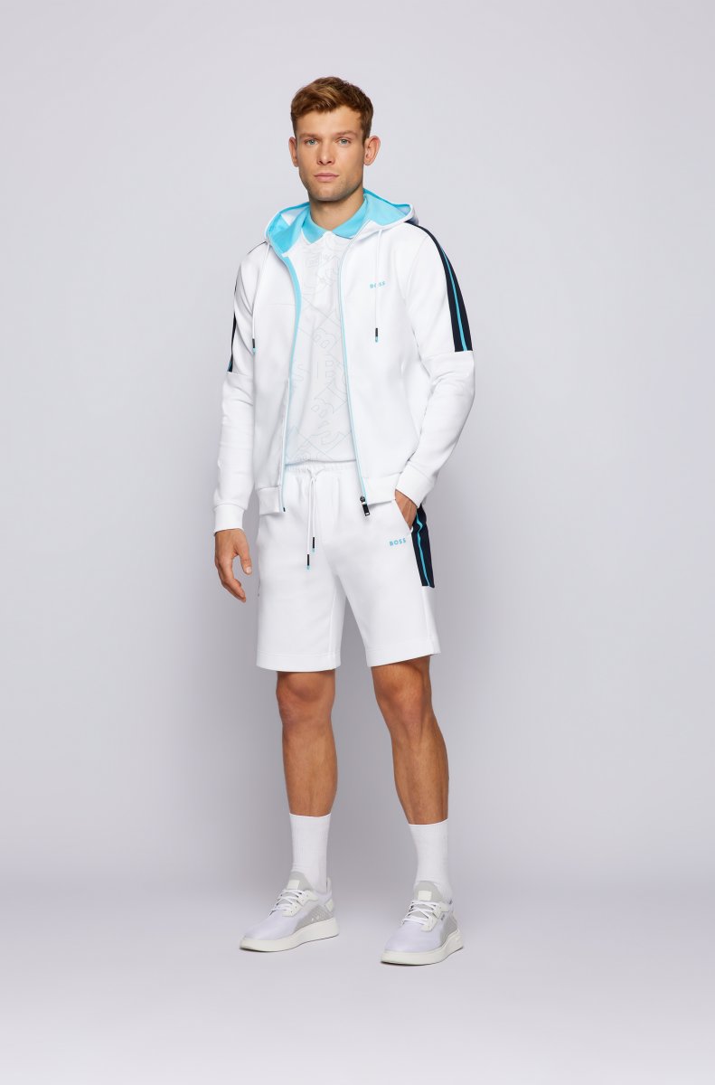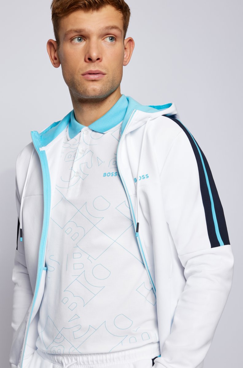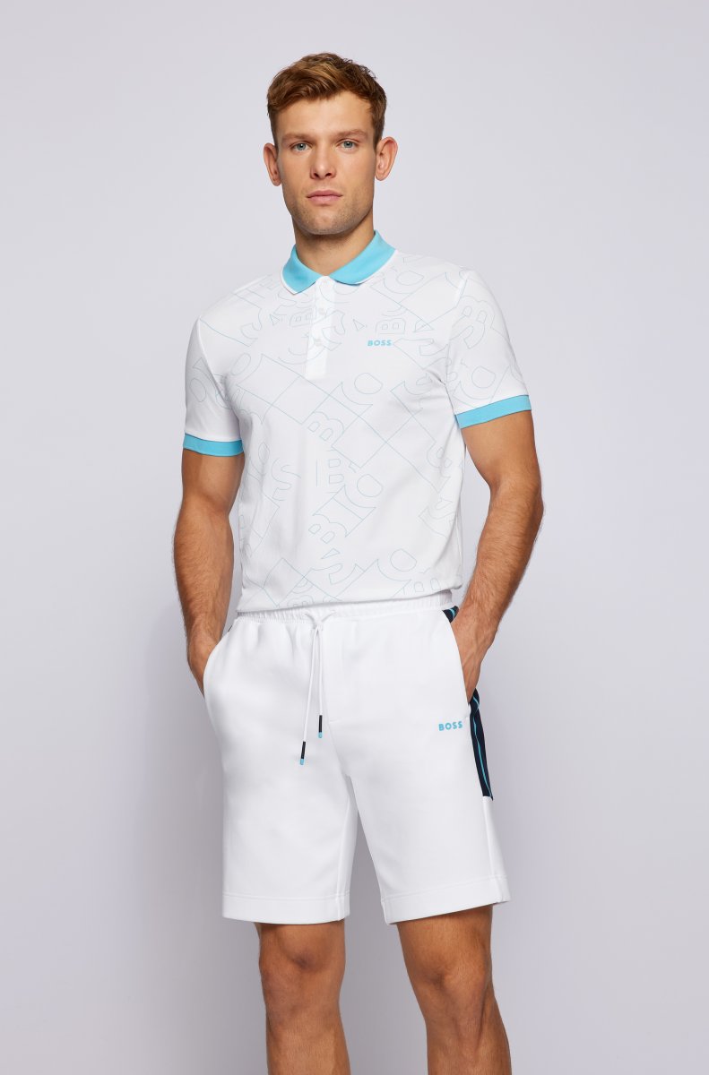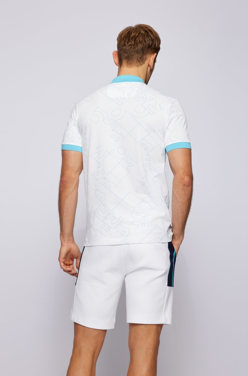 HUGO BOSS POLO SLIM FIT IN COTONE INTRECCIATO CON LOGO STAMPATO_BIANCO