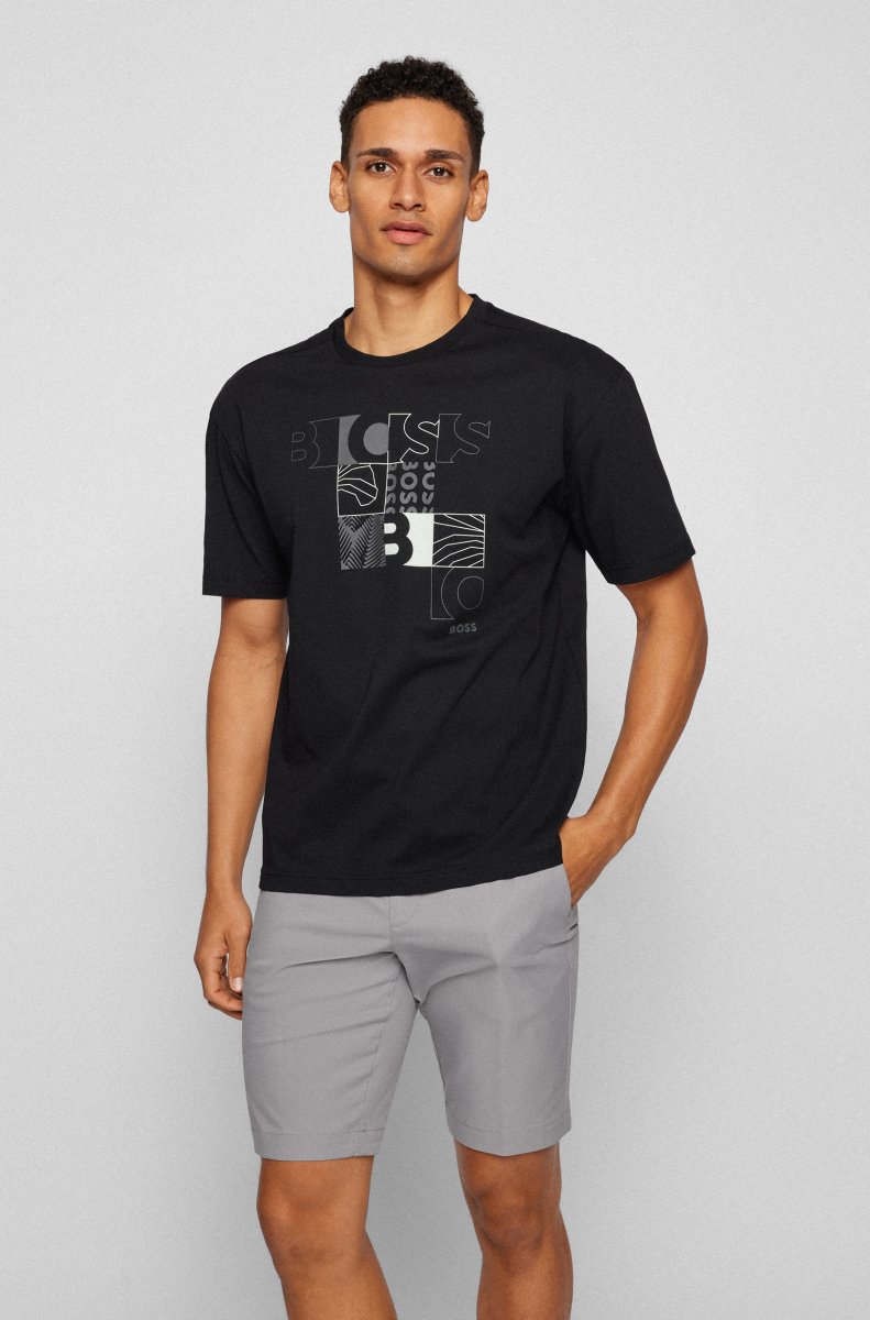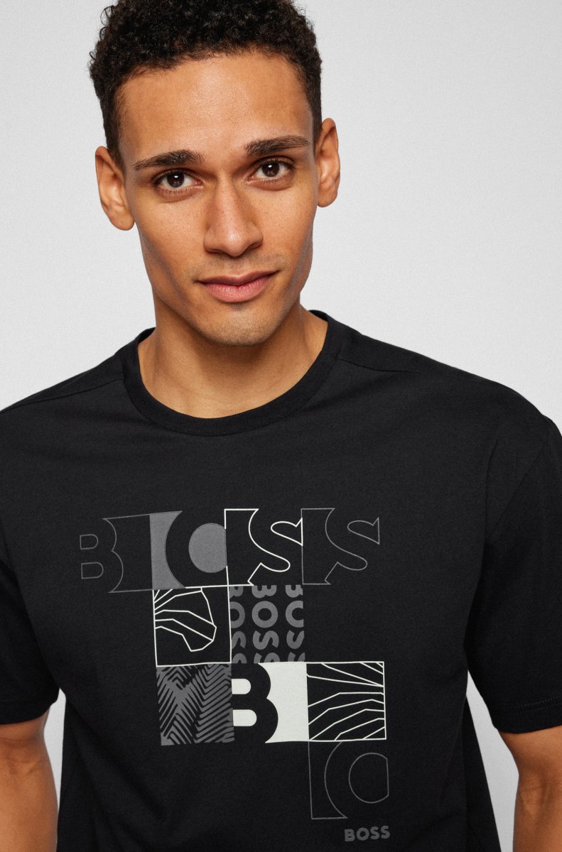 HUGO BOSS T-SHIRT IN JERSEY DI COTONE CON GRAFICA CON LOGO_NERO