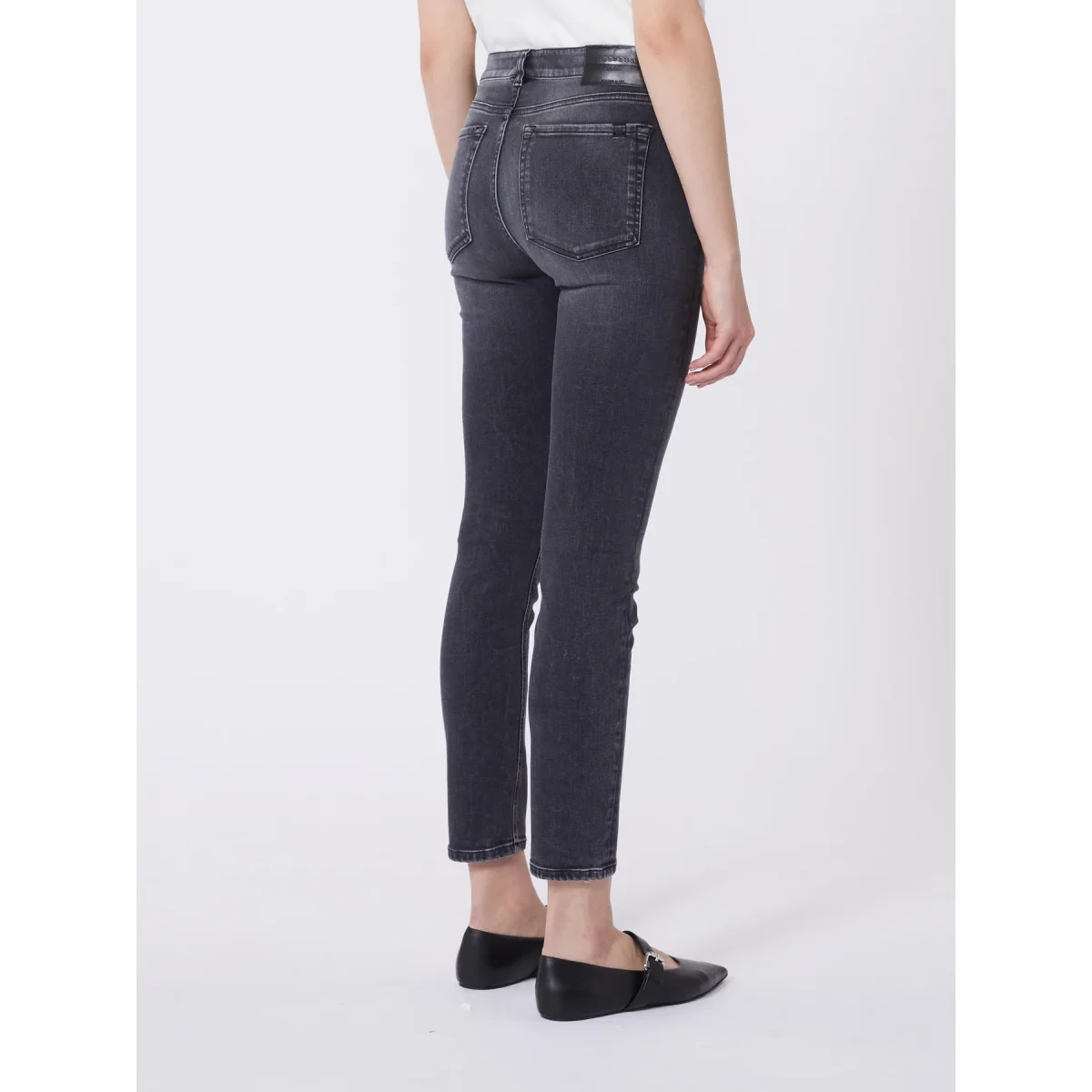 Jeans 5 tasche dalla vestibilitร aderente con baschina sul retro.