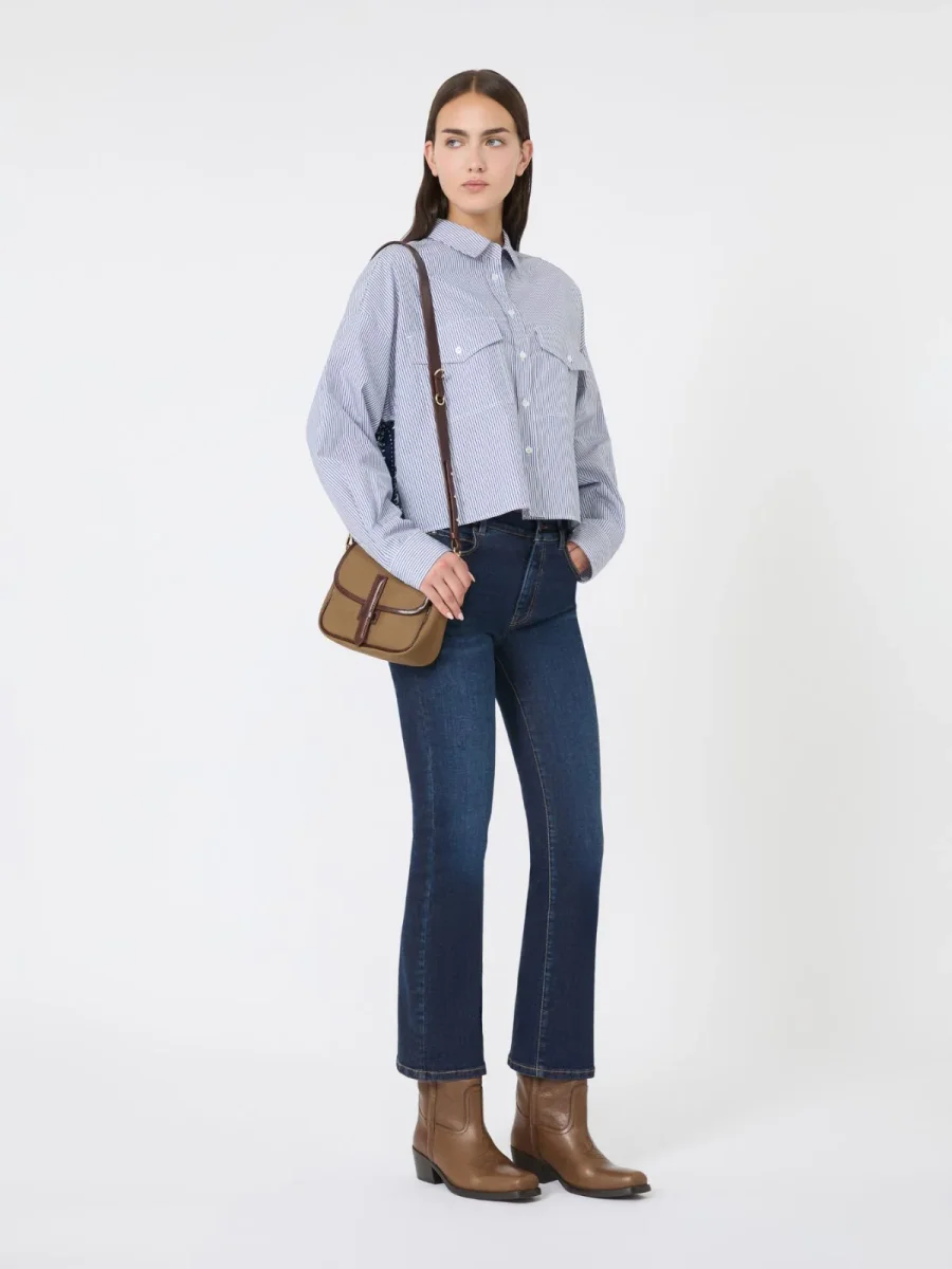 DETTAGLI Jeans ultra slim con taglio crop alla caviglia e linea leggermente svasata al fondo. Jeans in denim di cotone super stretch Chiusura con zip coperta e bottone a chiodo Modello 5 tasche Logo a farfalla sulla tasca posteriore destra Passanti per cintura in vita La modella veste la taglia 40 (IT) ed รจ alta […]