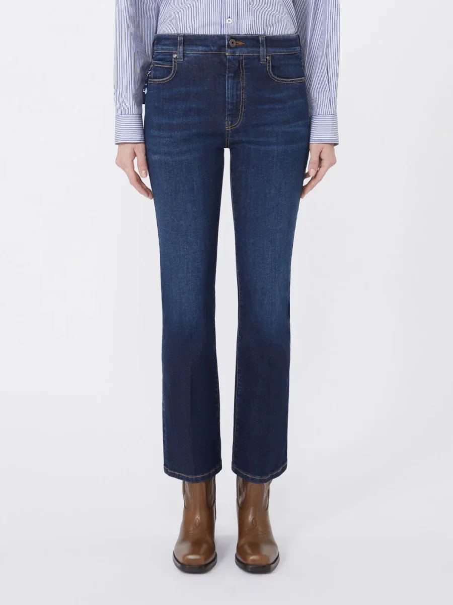 Jeans ultra slim con taglio crop alla caviglia e linea leggermente svasata al fondo.