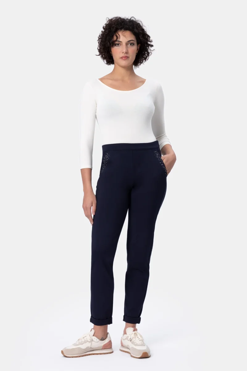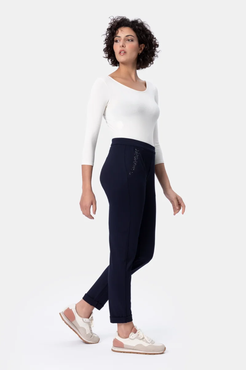 Punto milano leggero con dettaglio strass Punto milano peso tessuto leggero e super confortevole e comodocon dettaglio strass su tasche Peso tessuto: 4 stagioni Pantalone Jogger in punto milano leggero. Costruito con vita regolare elasticizzata, tutto chiuso con pratiche tasche davanti con dettaglio paillettes su tasche. L’elastico in interno cintura regala un comfort assoluto. Realizzato […]