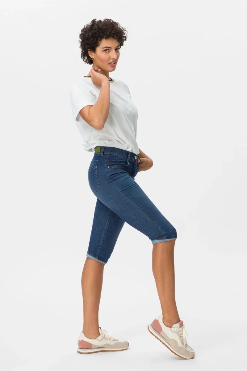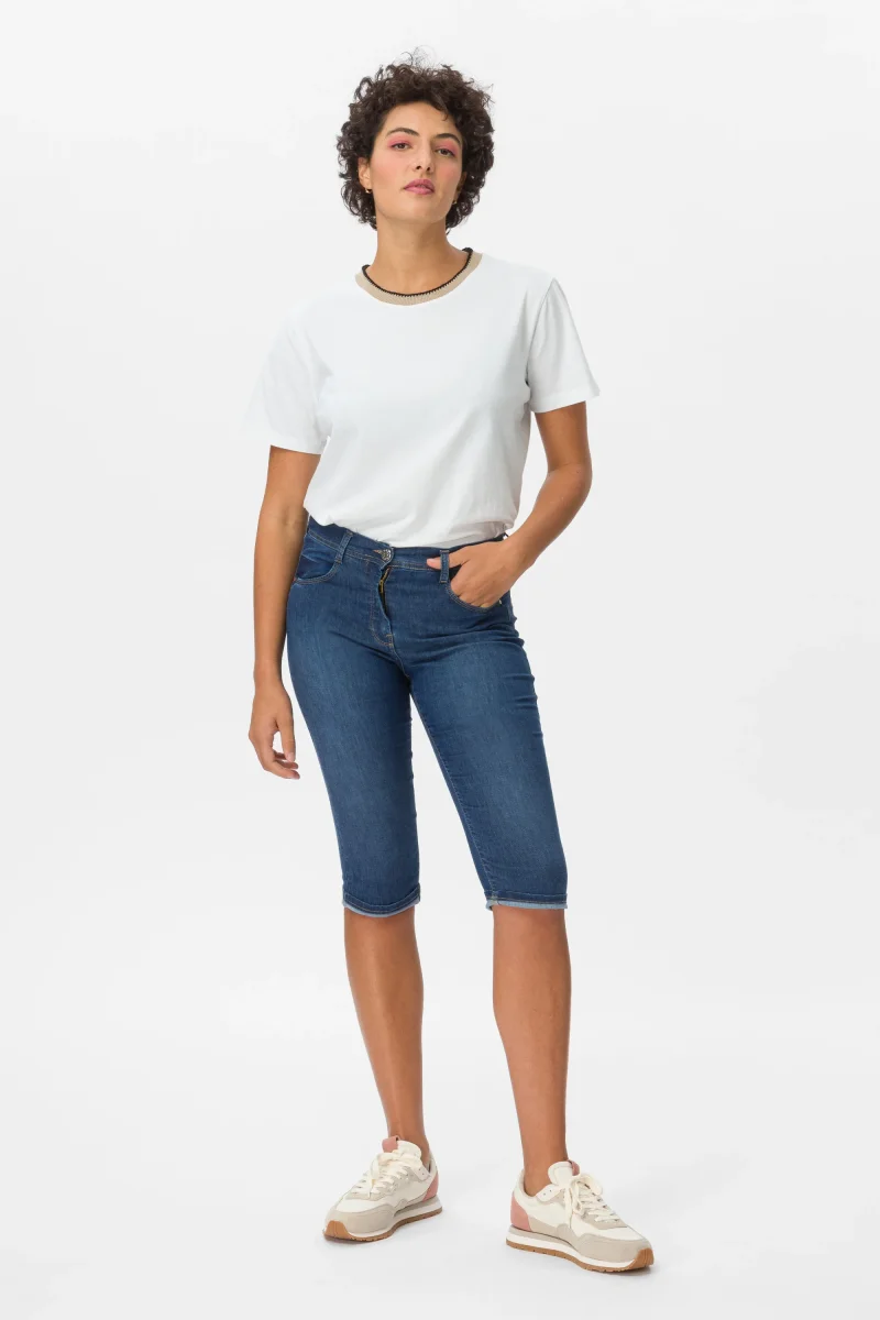 Pinocchetto in denim blue super stretch con vestibilitร slim e risvolto al fondo. Questo modello รจ costruito con vita media elasticizzata, chiusura con zip e bottone, pratiche tasche. Un jeans sportivo, versatile e quotidiano.