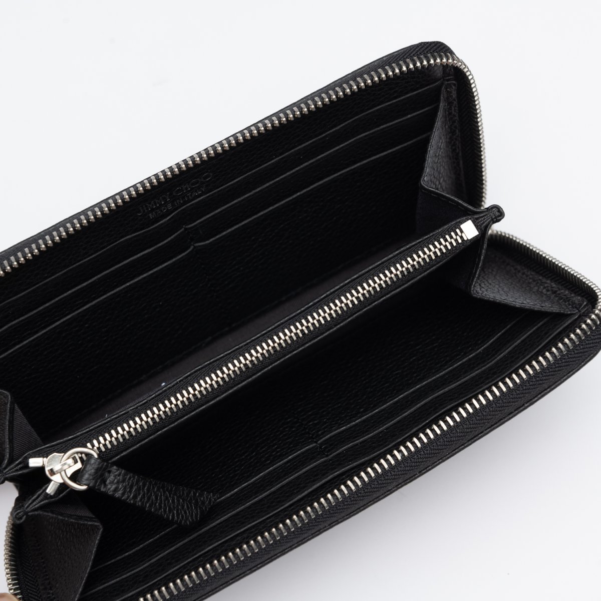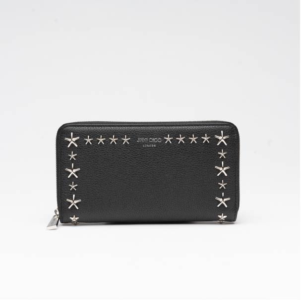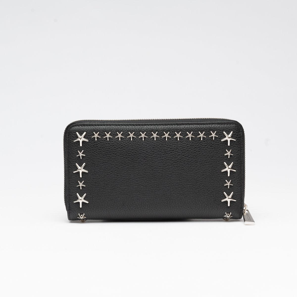 Portafoglio zip arround con stelline applicate nella pelle di vitello martellata