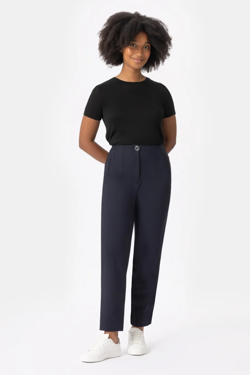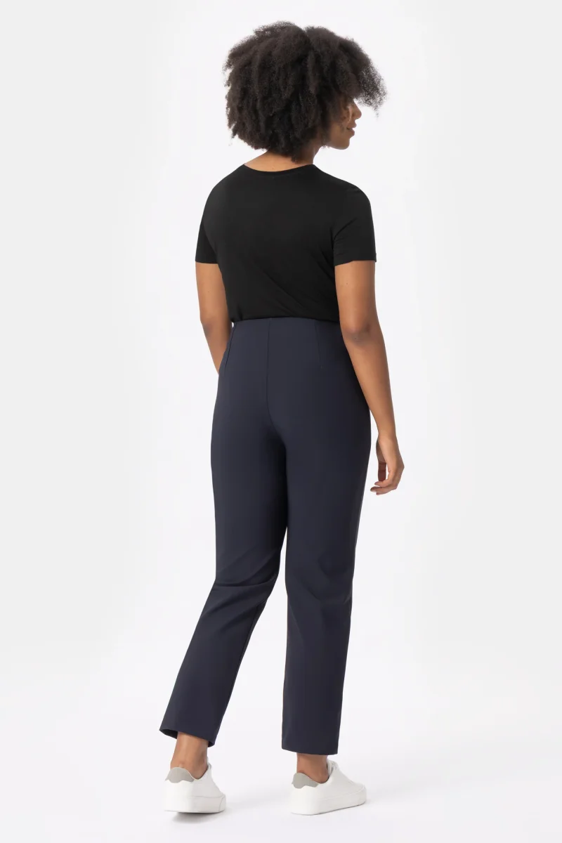 Pantalone in tessuto tecnico Bi-stretch con vestibilitร regular. Questo modello รจ costruito con vita regolare ed elasticizzata, dalla chiusura con zip e bottone. Il tessuto Bi-stretch permette la massima flessibilitร in tutte le direzioni offrendo adattabilitร e comfort. Dallโattitudine leisure e moderna, questo pantalone si adatta benissimo a situazioni quotidiane ma anche a look piรน formali e fashion. Un pantalone versatile, indispensabile nell’armadio di ogni donna.