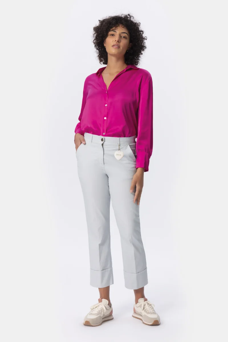 Pantalone Donna Gamba dritta Tessuto cotone super stretch Peso tessuto: Primavera/estate Pantalone in cotone super stretch con dettaglio ciondolo, morbido, vita regolare e attuale dona comoditร e freschezza. Chiusura con zip e bottone, pratiche tasche e dettagli cuciture. Un jeans morbido, quotidiano e di tendenza. Un must have per l’inverno I prodotti Iber nascono per […]