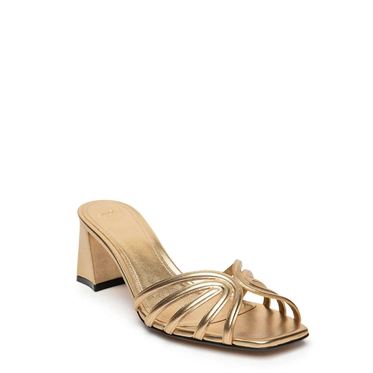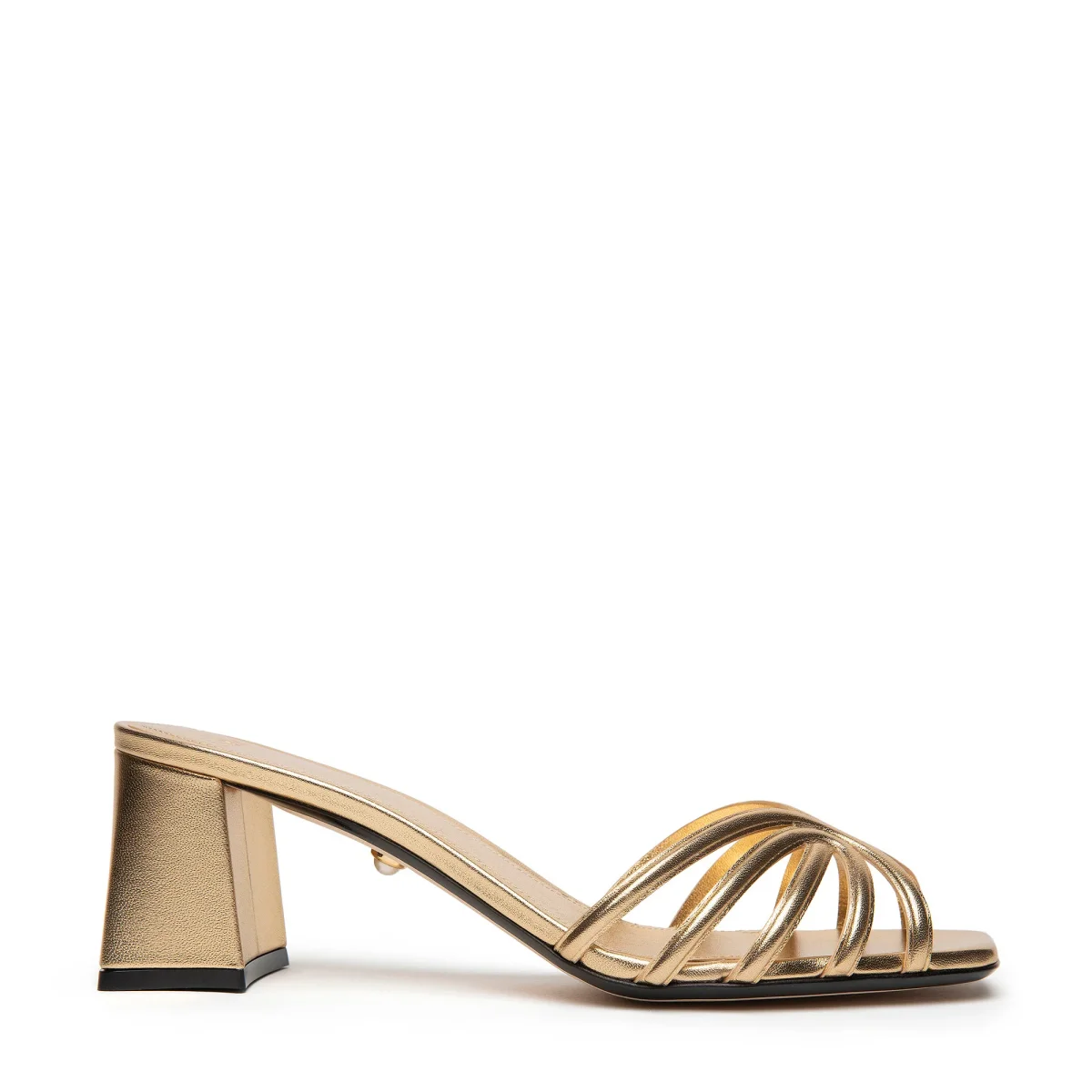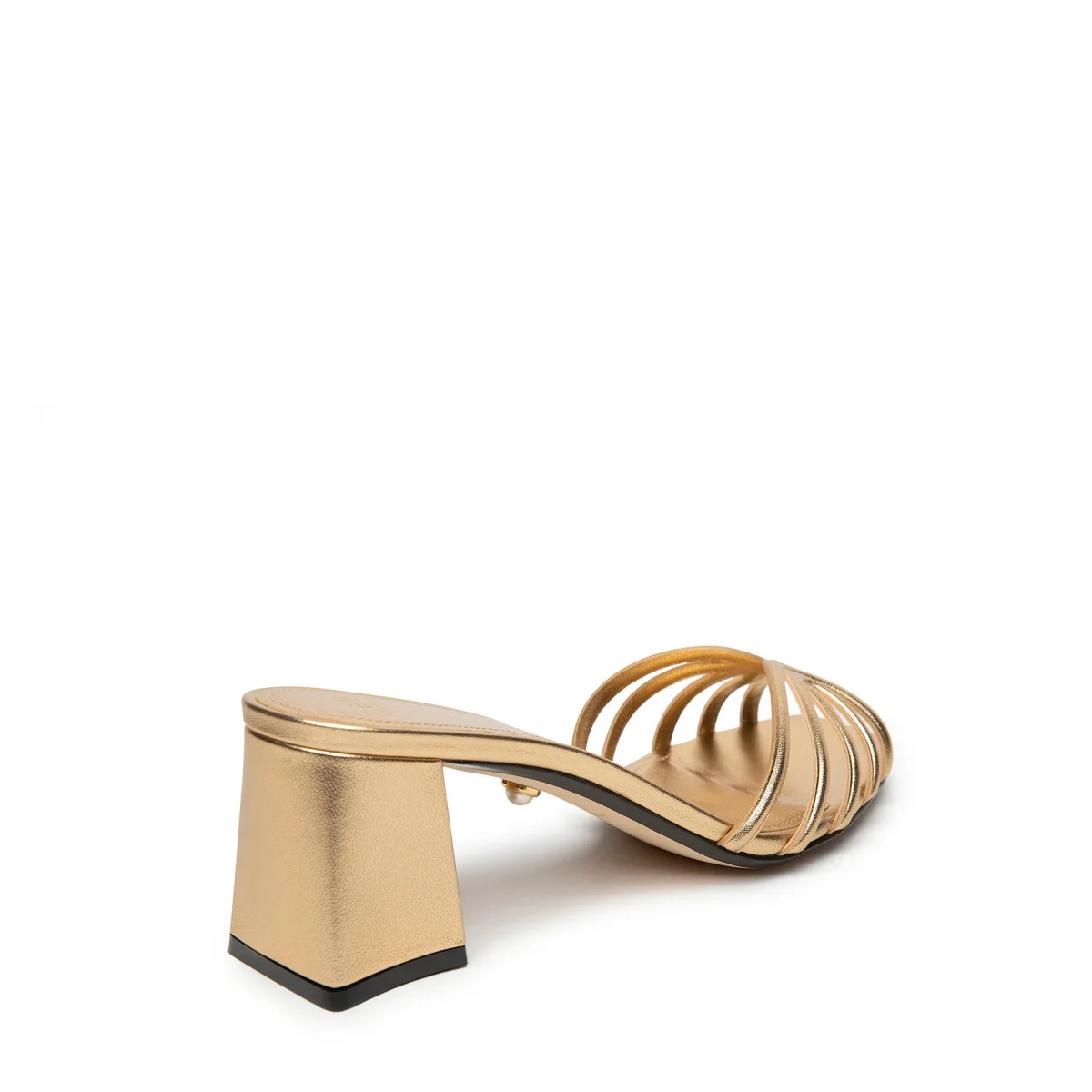 Sabot in pelle laminata con gabbia effetto 3d e tacco largo ricoperto in tono.