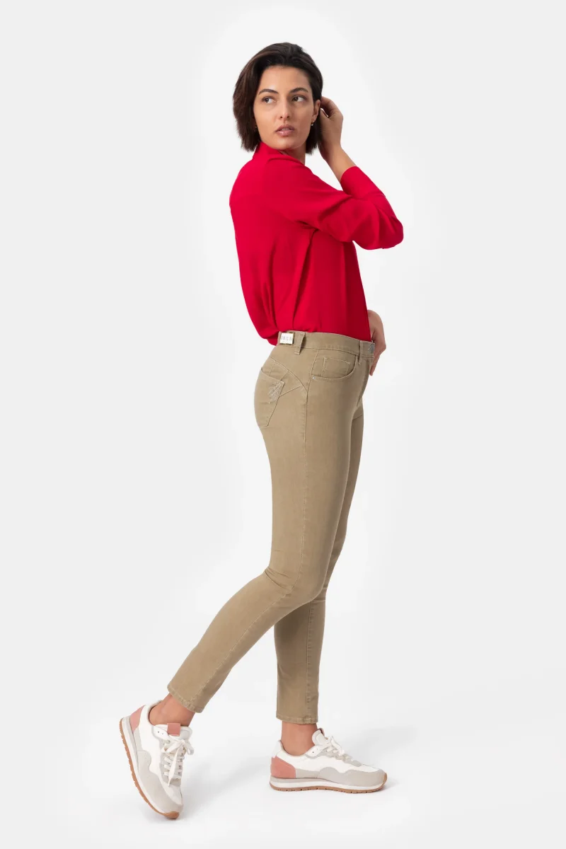 Jeans Donna Slim Push-up dettaglio strass Denim Blu super stretch Peso tessuto: primavera/estate Jeans push-up in denim beige super stretch con vestibilitร slim e vita regolare. L’elastico in interno cintura regala un comfort assoluto. Chiusura con bottone e zip. Dettaglio strass sulla tasca dietro per un tocco glamour. Dallโattitudine leisure questo pantalone si adatta a […]