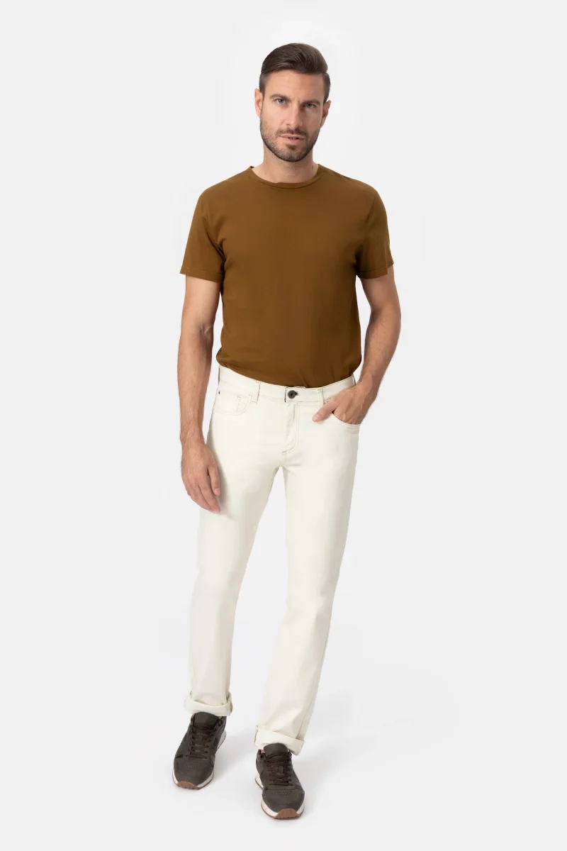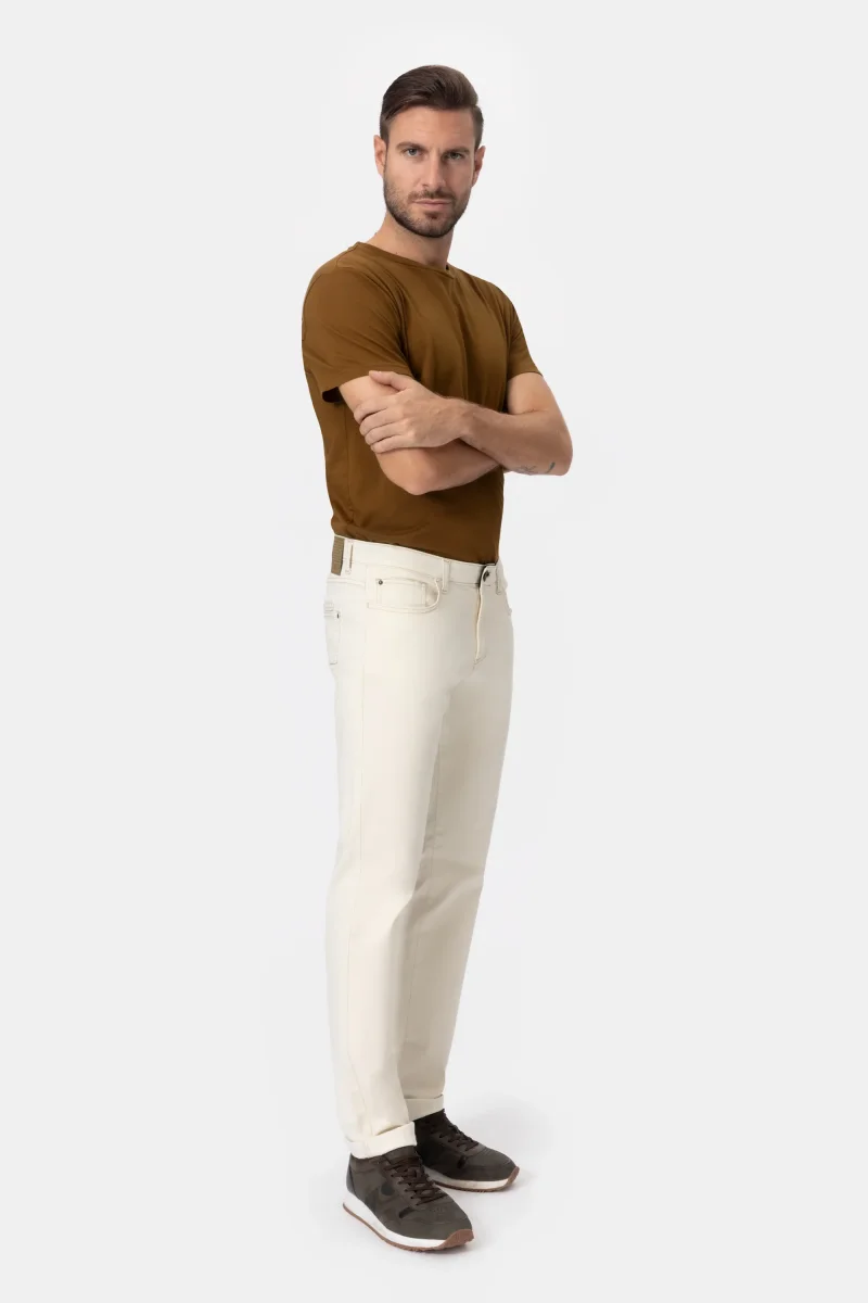 Jeans Uomo Slim Denim leggero stretch Peso tessuto: primavera/estate Jeans in denim stretch Ecrรน dalla vestibilitร slim con tessuto elasticizzato e leggero ideale per la stagione estiva. Modello 5 tasche con chiusura bottone e zip. Il jeans รจ caratterizzato dalla cintura interna in elastico che dona comoditร e praticitร , tanto da poter evitare l’uso della […]