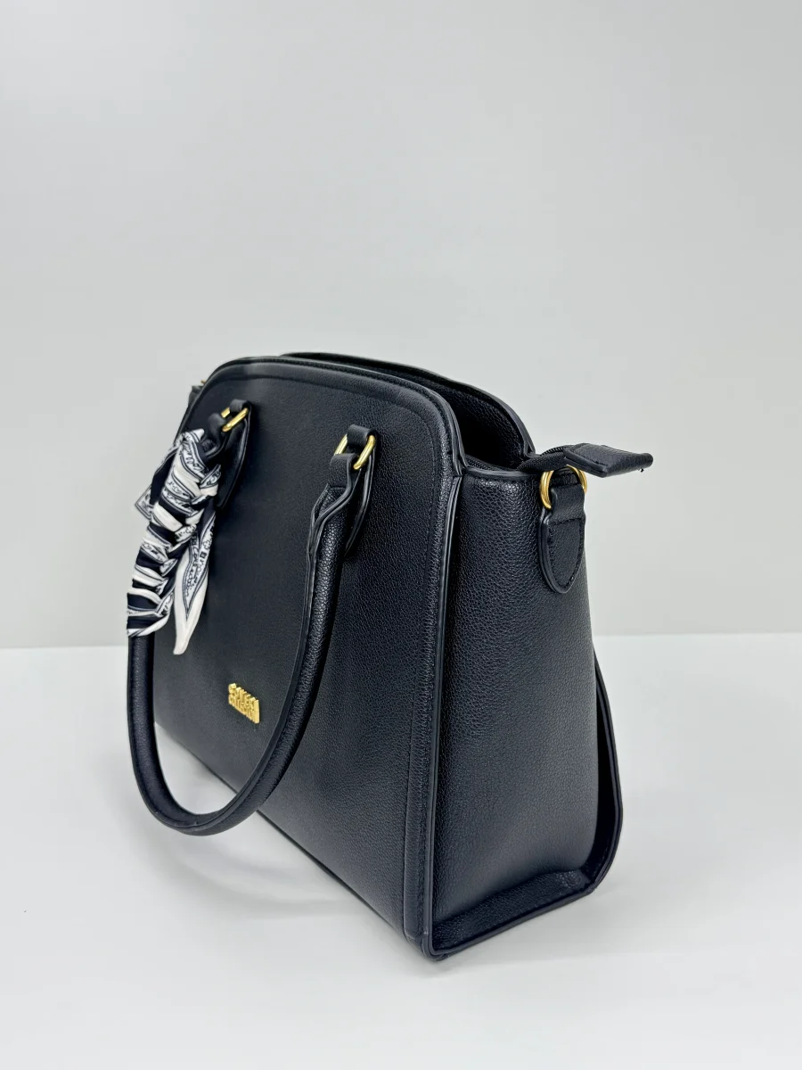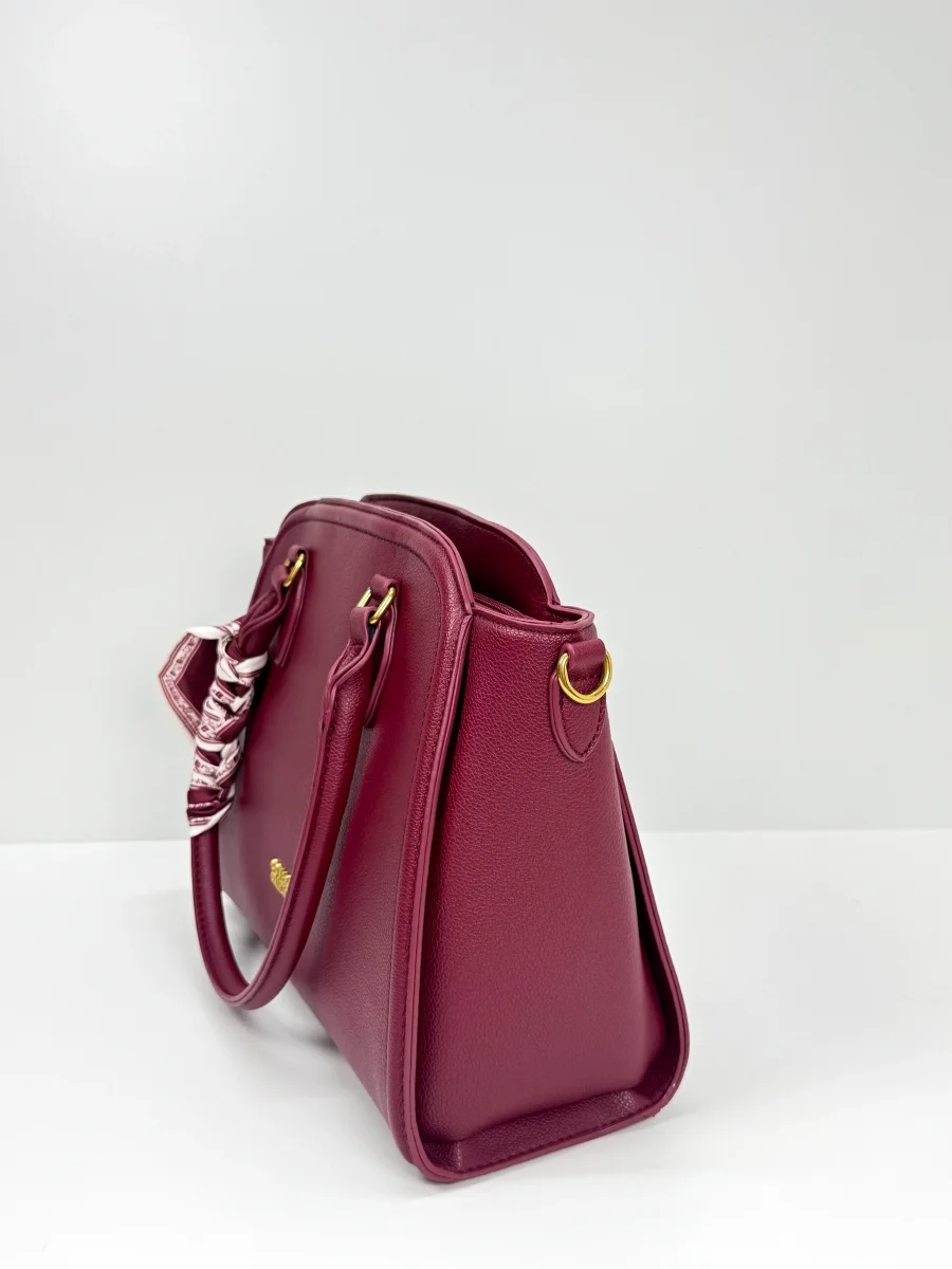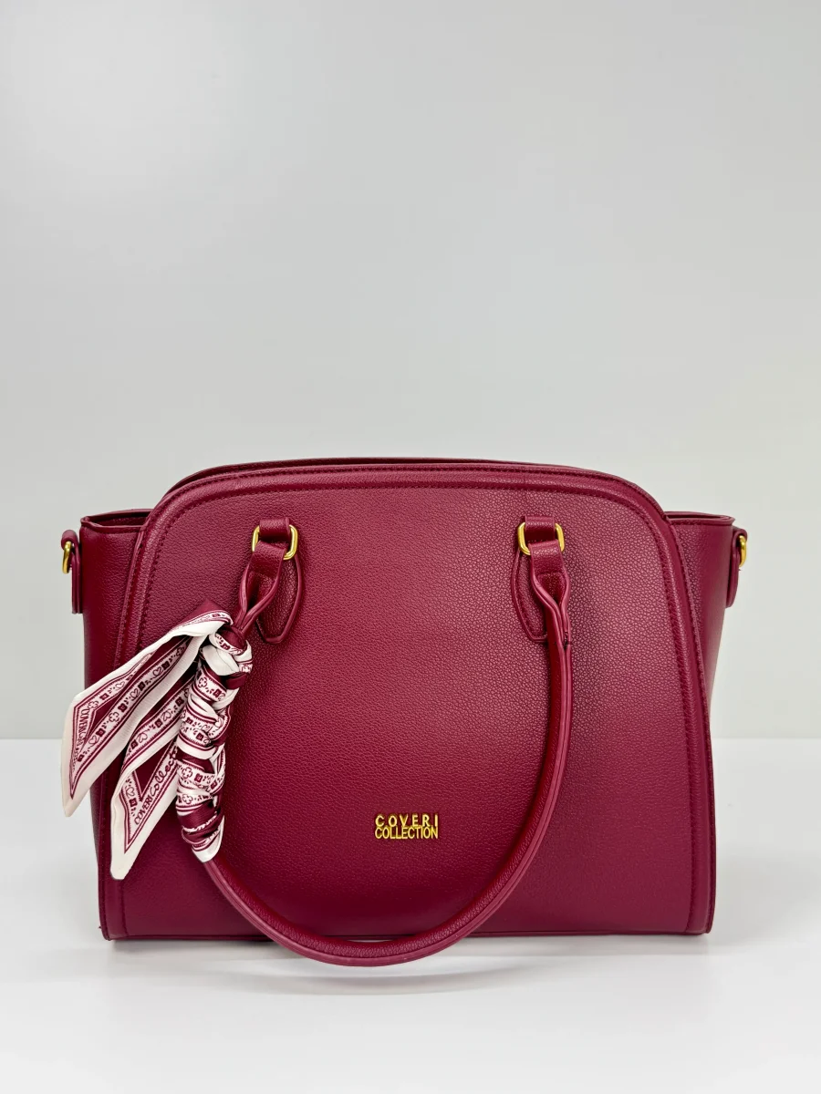 La borsa Mave presenta una chiusura a zip, e un foulard laterale sugli stessi colori. ร un modello della Coveri Collection in ecopelle martellata. Disponibile in Bordeaux e Nero.