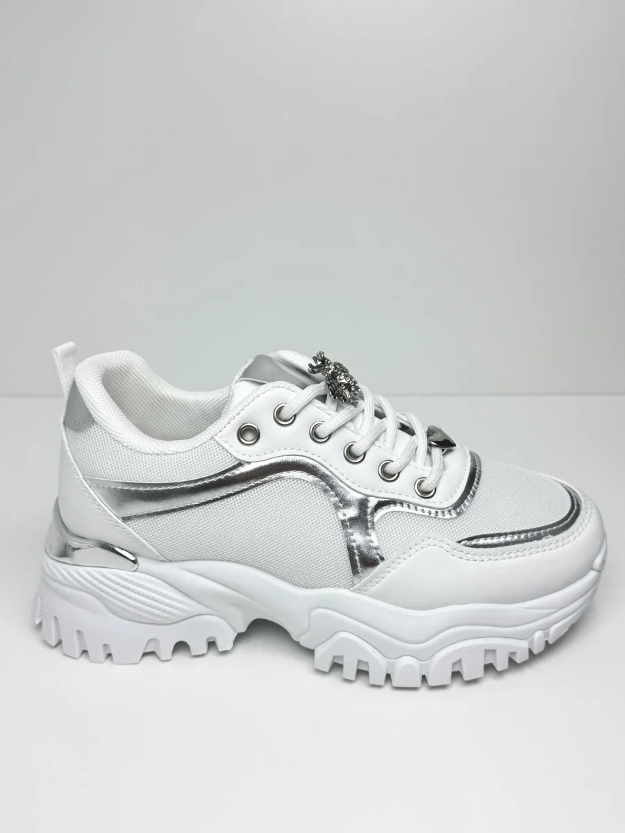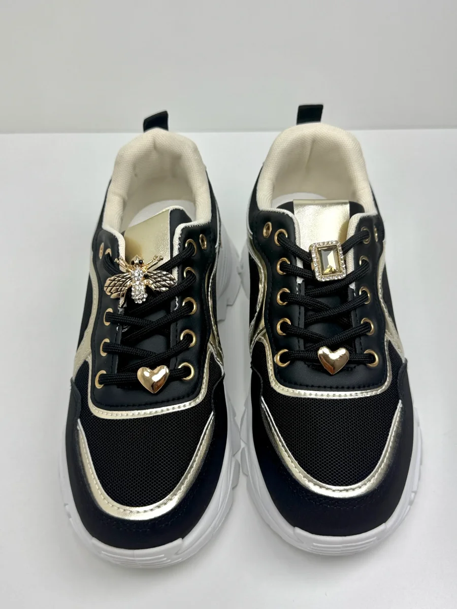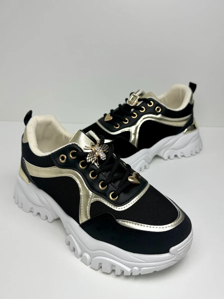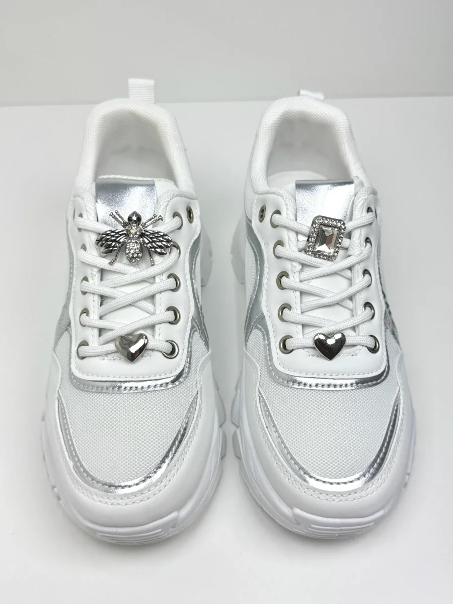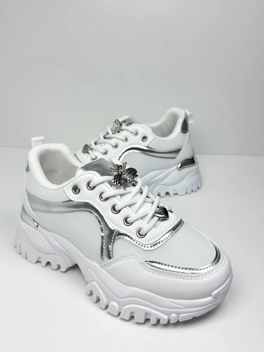 Le sneakers Maya sono un modello chunky, con dei charms sui lacci ad impreziosire l’intera calzatura. Ideali per chi non vuole rinunciare ad un tocco glamour e non rinunciare alla comoditร .
