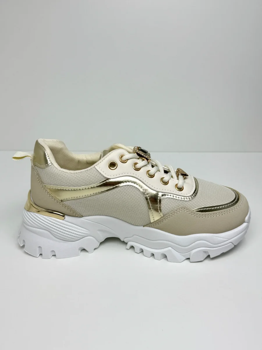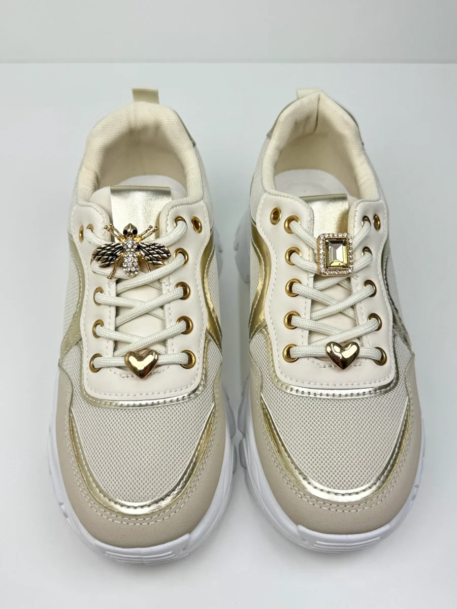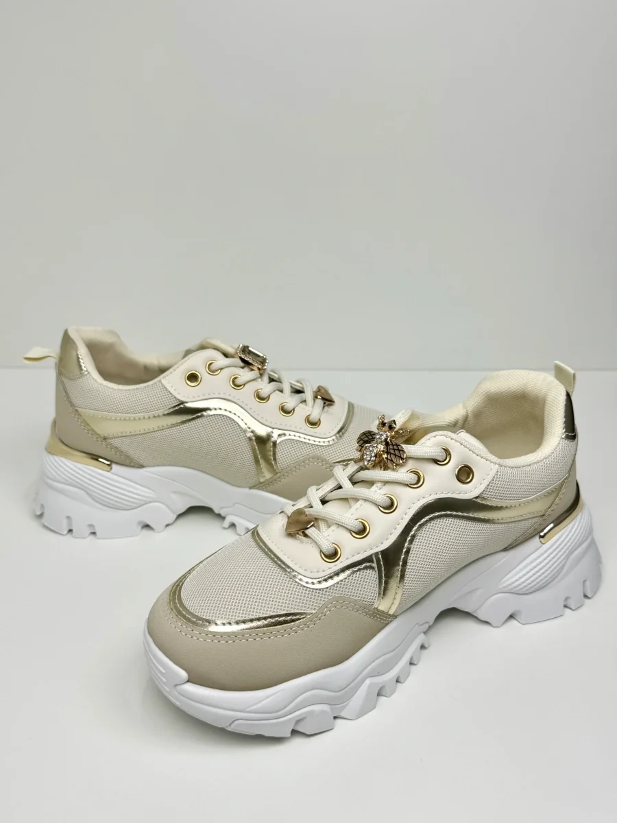 Le sneakers Maya sono un modello chunky, con dei charms sui lacci ad impreziosire l’intera calzatura. Ideali per chi non vuole rinunciare ad un tocco glamour e non rinunciare alla comoditร . Disponibili in: Beige, Bianco e Nero