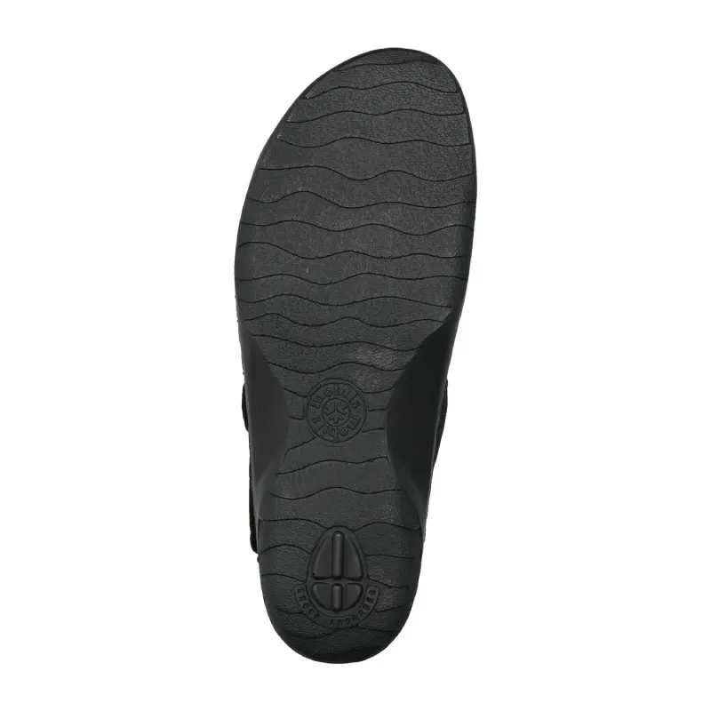 Sandalo pratico e comodo, dalla eccezionale calzata grazie a tre allacciature a scratch regolabili e alla morbida fodera. Il plantare estraibile dotato della tecnologia SOFT-AIR riduce al minimo gli urti, garantendo una soffice camminata defaticante.