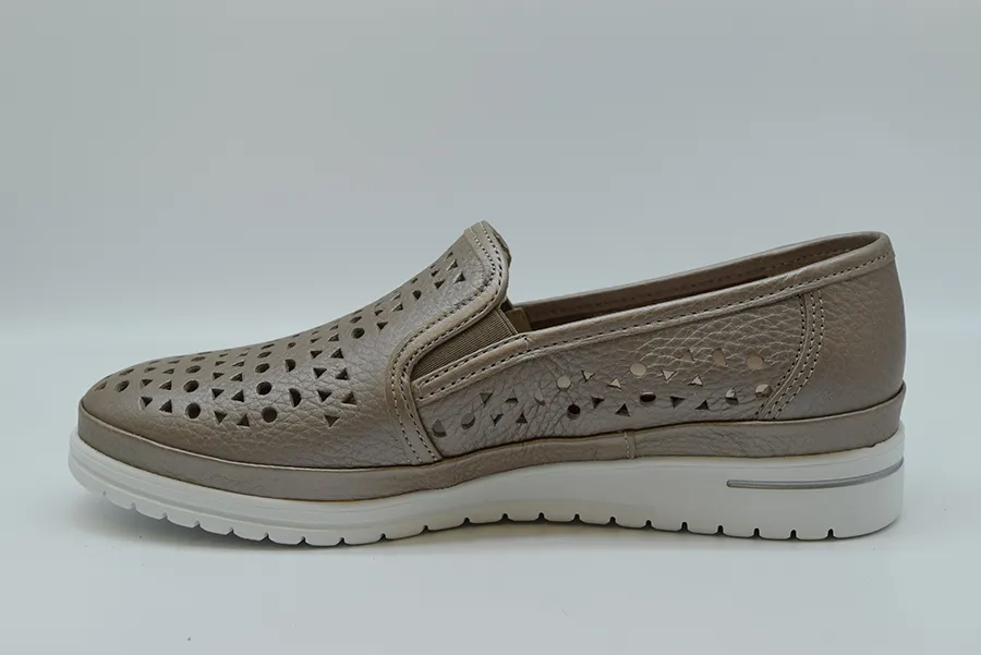 Il mocassino Jana Perf incarna alla perfezione lo spirito casual e grintoso che le donne cercano per il quotidiano. E’ realizzato in pelle di vitello morbidissima e grazie alla foratura della pelle, lo rende il mocassino piรน fresco che tu possa mai avere. Il plantare รจ anatomico e realizzato in pelle, per garantire sostegno e traspirazione. Ha un plantare estraibile ed intercambiabile. La suola invece si caratterizza per la sua leggerezza e per la capacitร  di assorbire i colpi.