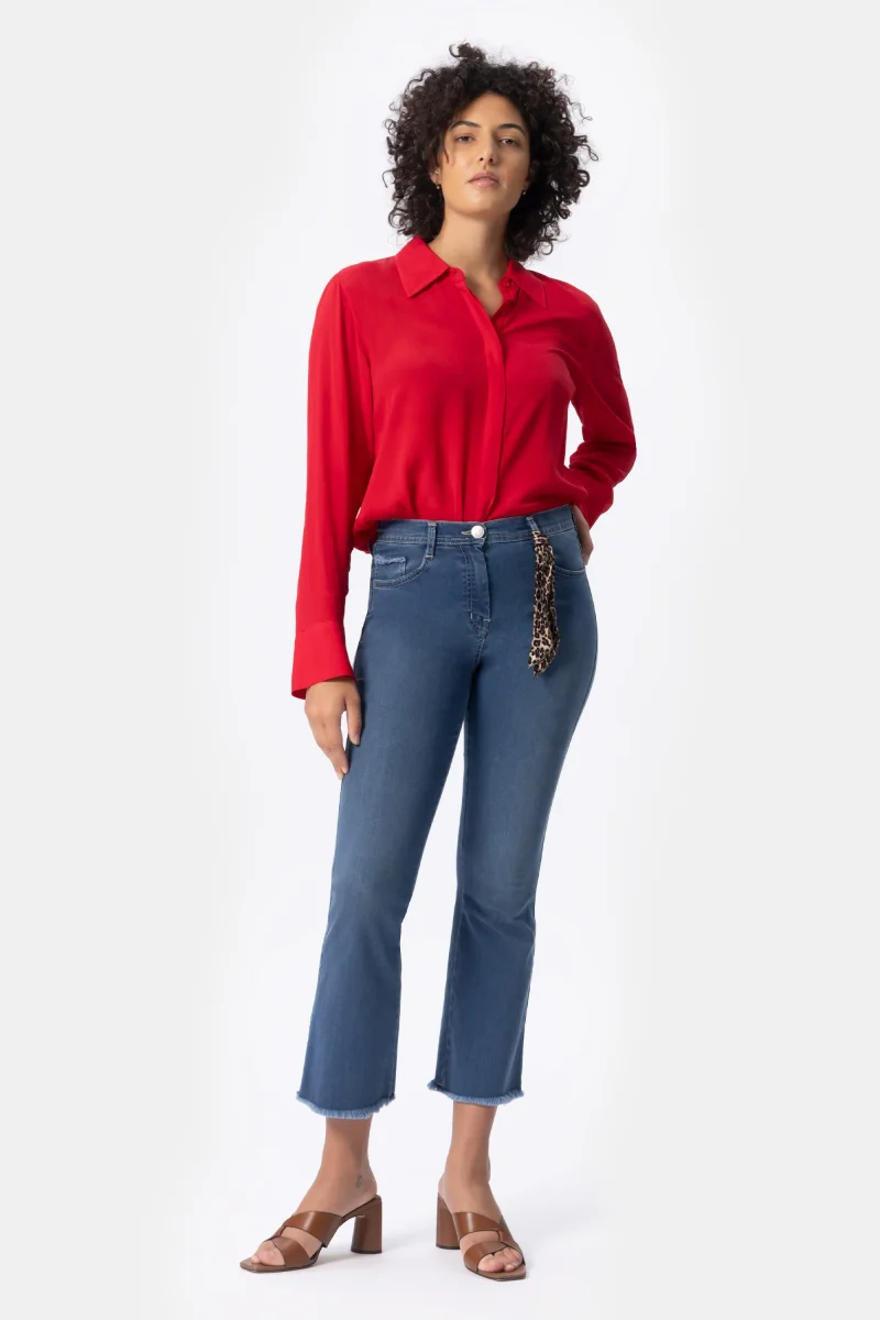 Jeans Donna Demi Flare Denim super stretch Peso tessuto: 4 stagioni Jeans in denim blue super stretch a trombetta con orlo sfragiato e bandana decorativa. Fit aderente svasato al fondo, con vita regolare e chiusura con bottone e zip. Un jeans attuale, comodo e per ogni occasione, da quelle piรน quotidiane a quelle piรน eleganti. […]