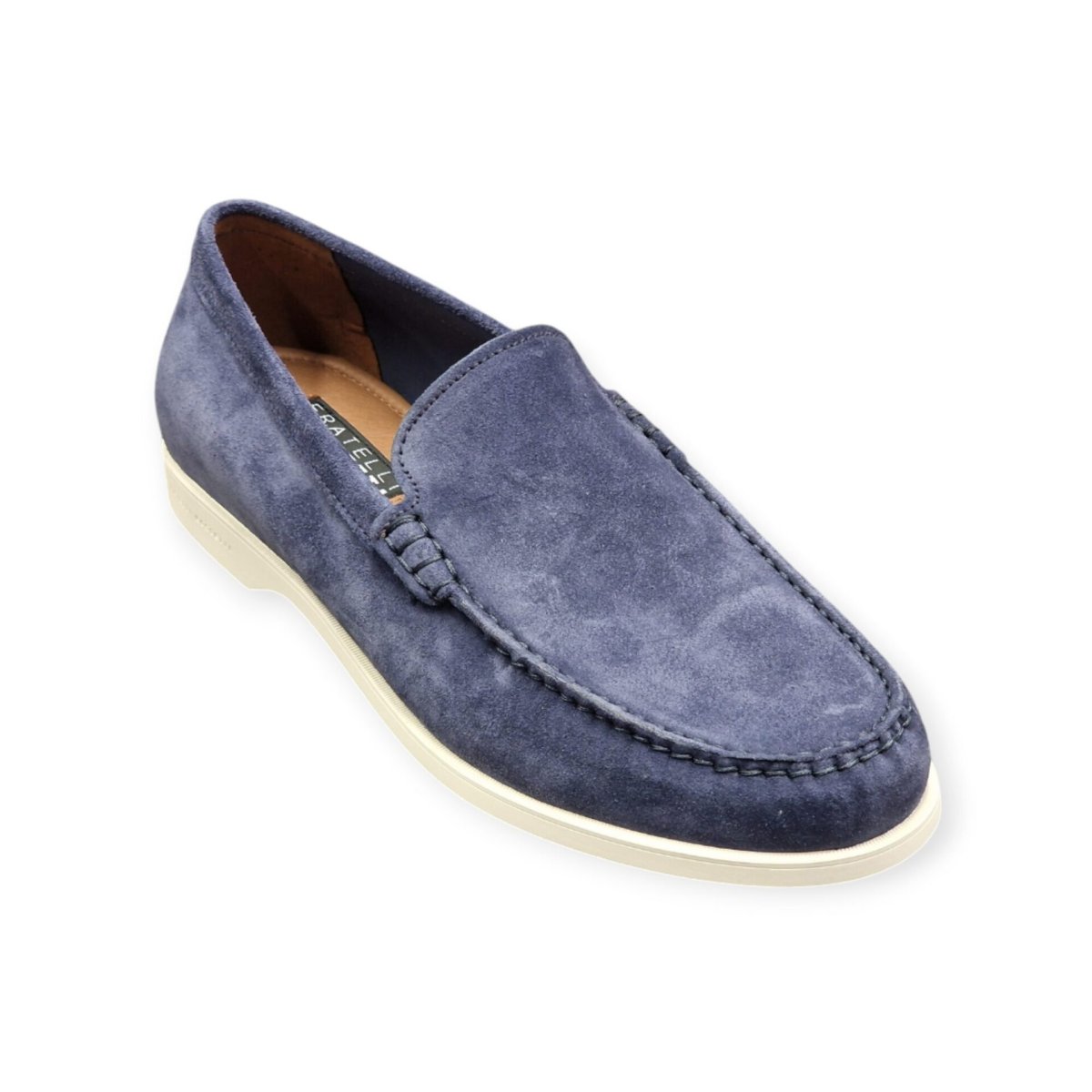 MOCASSINI “F.lli Rossetti ” IN NABUK BLU FONDO GOMMA