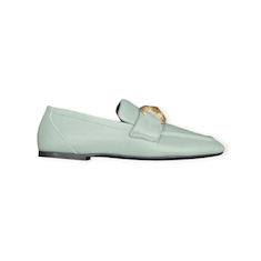 Mocassino in morbida nappa con accessorio morsetto dorato. Punta squadrata, tacco basso e fondo gomma. Una miscela creativa con l’origine della mascolinitร e una tomaia confortevole. ร un design di tendenza; una nuova interpretazione di una silhouette senza tempo.