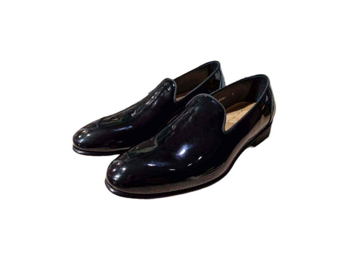 MOCASSINI “Green George” IN VERNICE NERO FONDO CUOIO 20 mm
