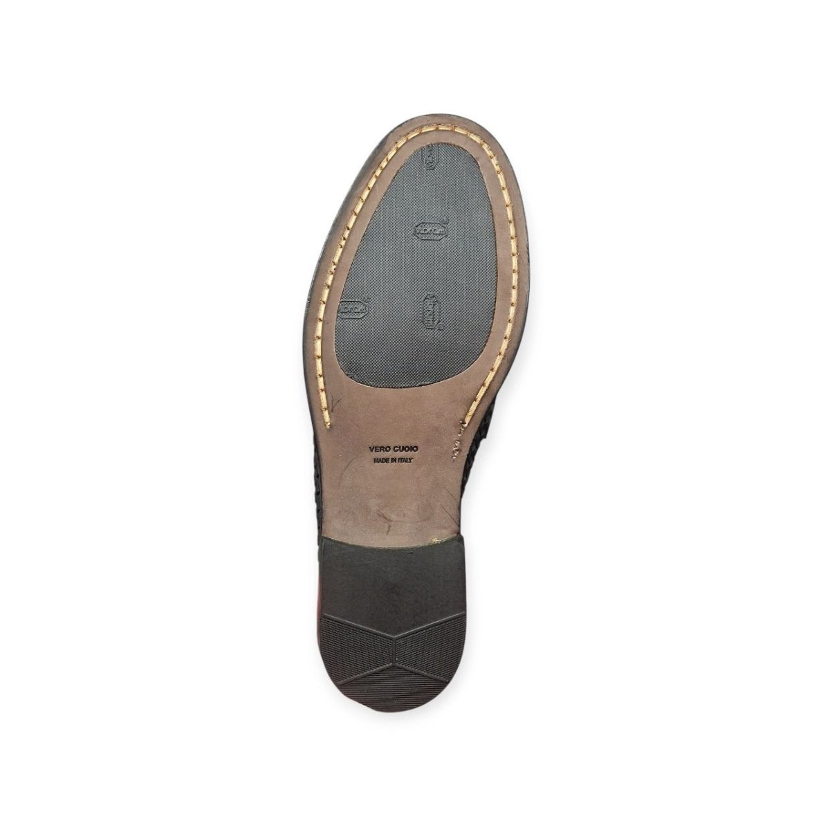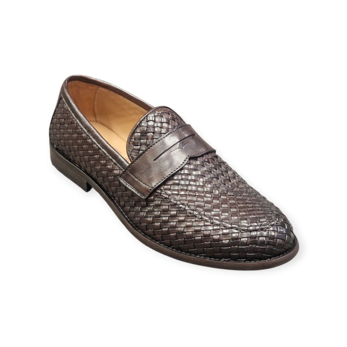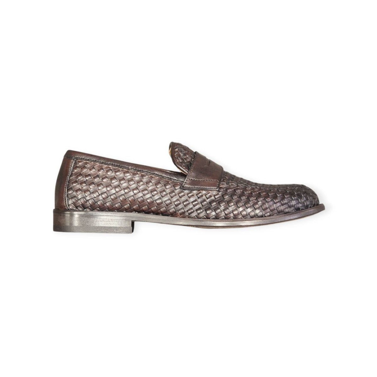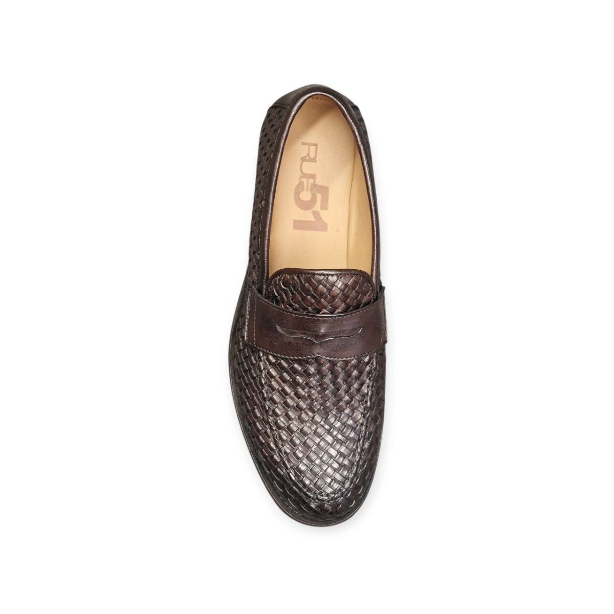 Raffinati ed eleganti, i mocassini Marechiaro della linea “Rue 51” spiccano grazie alla tomaia in vitello intrecciato testa di moro e la suola in cuoio con gomma antiscivolo. Sono realizzati con cura in Italia e presentano una comoda silhouette con punta arrotondata e suola in cuoio. Indossali con completi sartoriali contemporanei, sia di giorno che di sera.