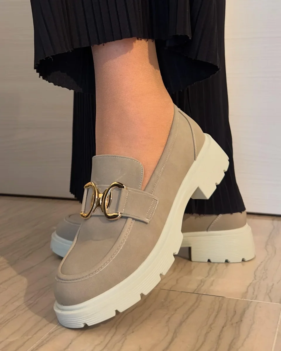 MOCASSINO BEIGE CON FIBBIA ORO