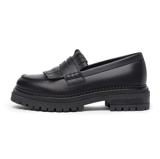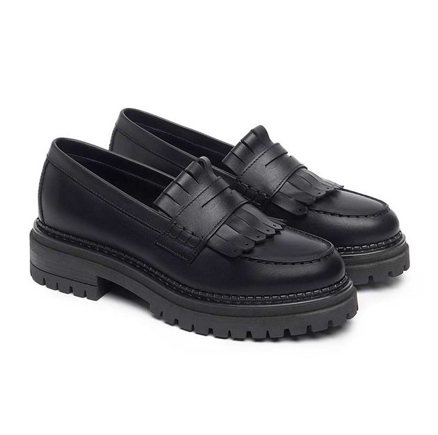 Mocassino Donna nero in pelle, impreziosito da frange sulla parte anteriore. Design sofisticato per un look glam. Made in Italy.