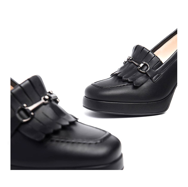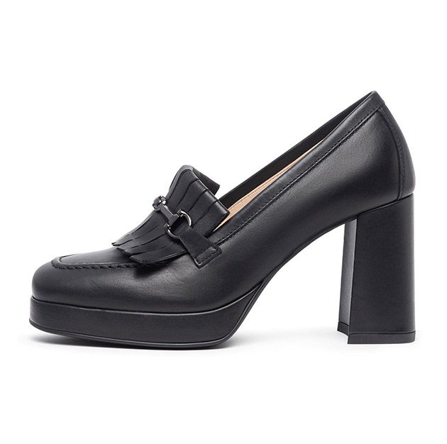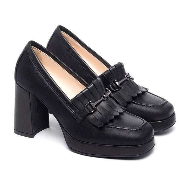 Mocassino Donna nero in pelle, impreziosito da frange sulla parte anteriore. Design sofisticato per un look glam. Made in Italy.