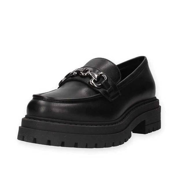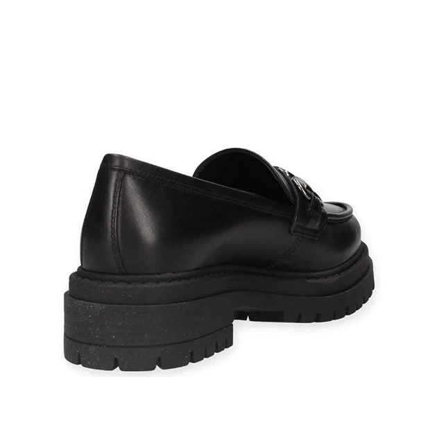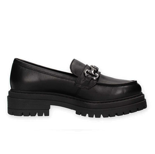 Mocassino Donna nero in pelle, con con morsetto satinato e suola carrarmato in gomma. Design sofisticato per un look glam. Made in Italy.