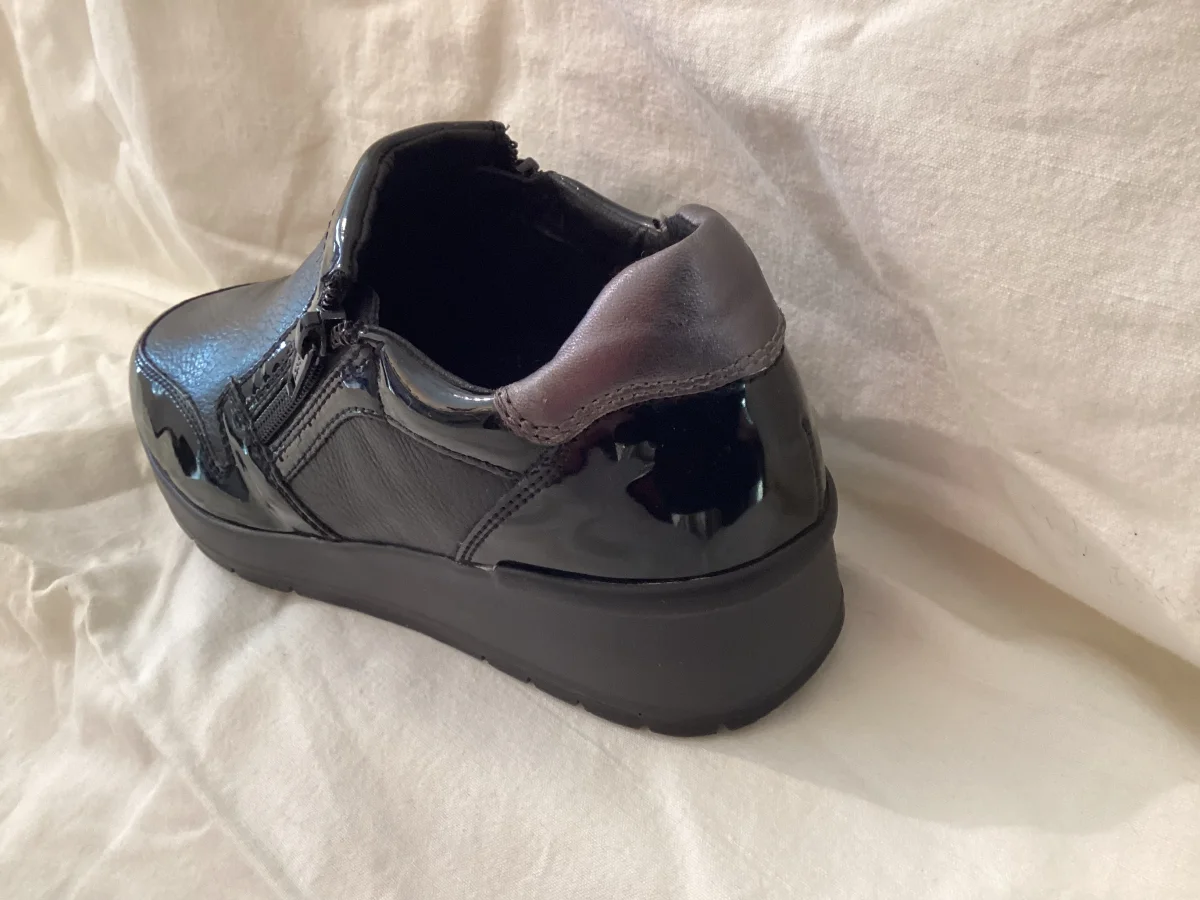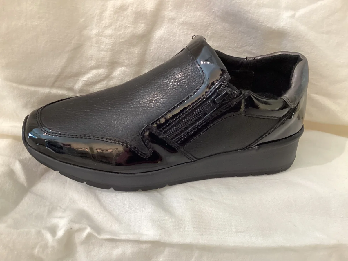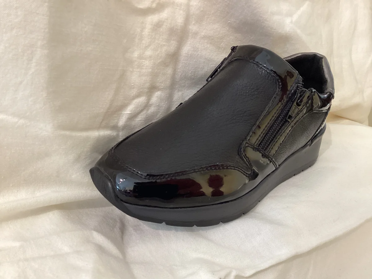 Se stai cercando una calzatura comoda, di eccellente qualitร eccola qui! Questo mocassino รจ molto pratico, in quanto ha 2 zip allโaltezza del collo del piede per adattarsi a particolari esigenze, quale ad esempio il collo del piede alto. Sia il plantare interno che la tomaia sono in pelle, ad indicare lโottima riuscita. Dettagli in pelle verniciata cosรฌ si presta bene anche ad outfit eleganti. Plantare morbido.