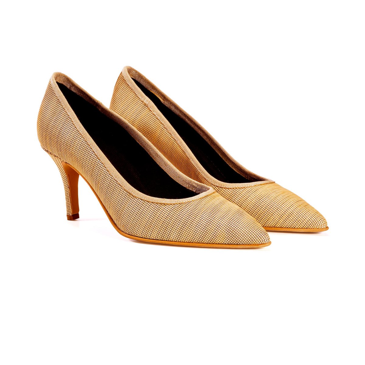 Mod. ADA – Scarpa decolleté con tacco a coda in pelle vegana di legno di ciliegio