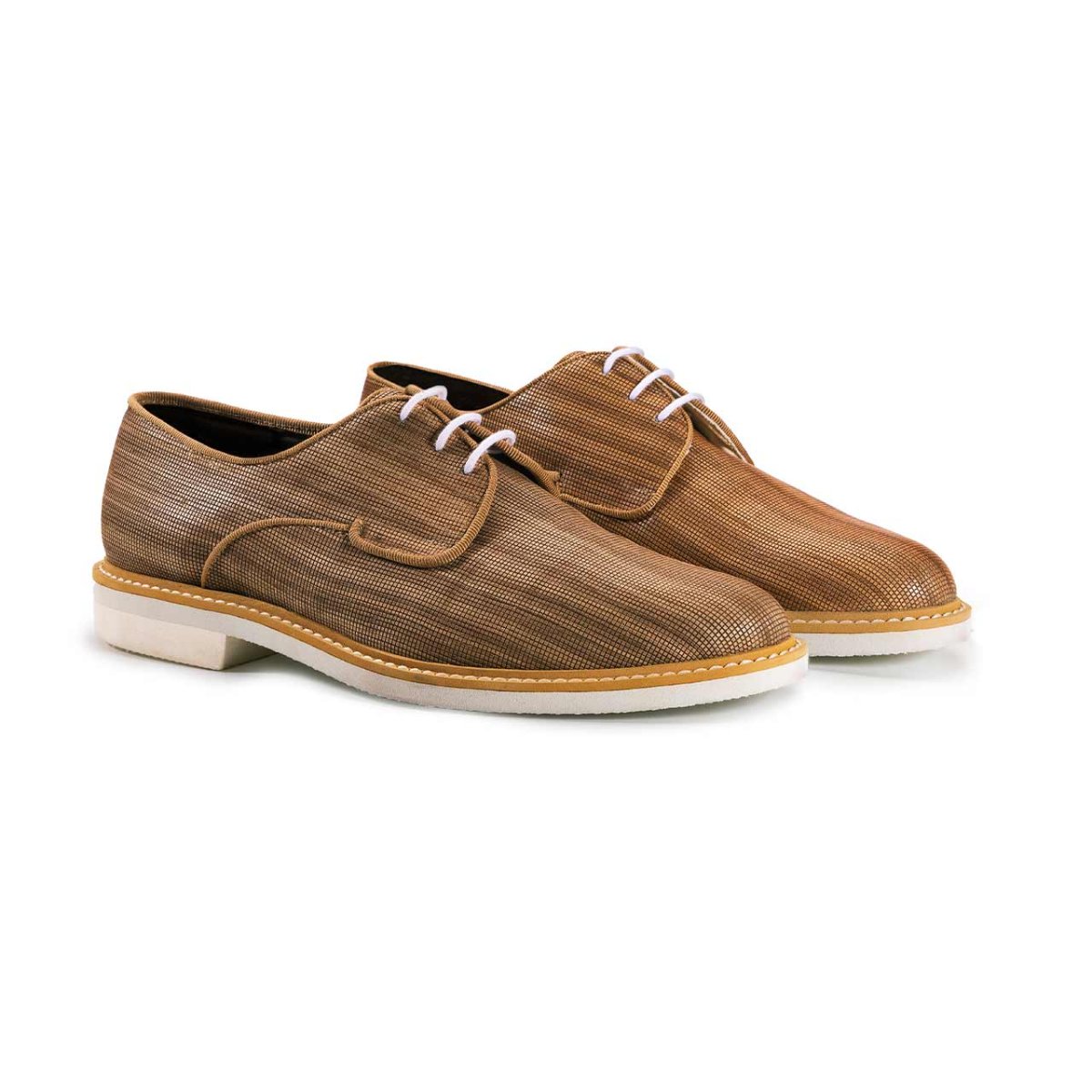 Mod. BRANDO – Scarpe stringate Derby in pelle vegana in legno di noce