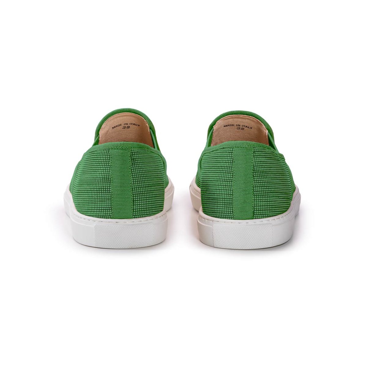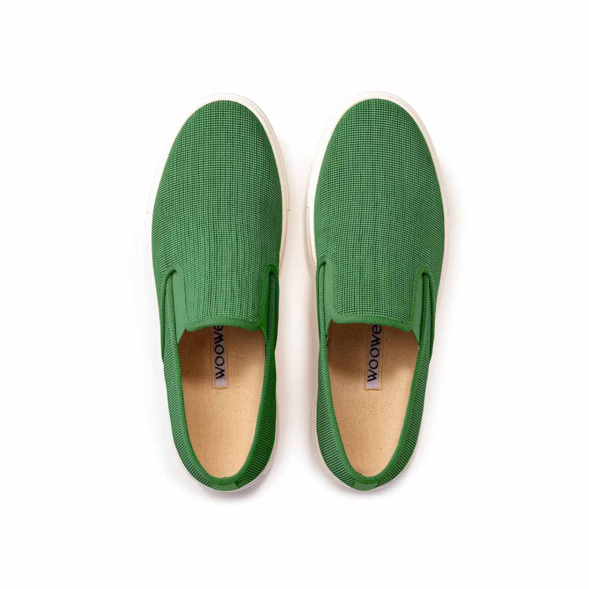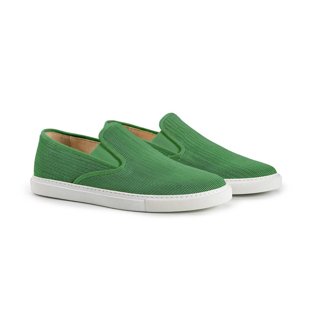 Mod. PABLO – Fashion sneakers senza lacci in pelle vegana di legno di acero smeraldo