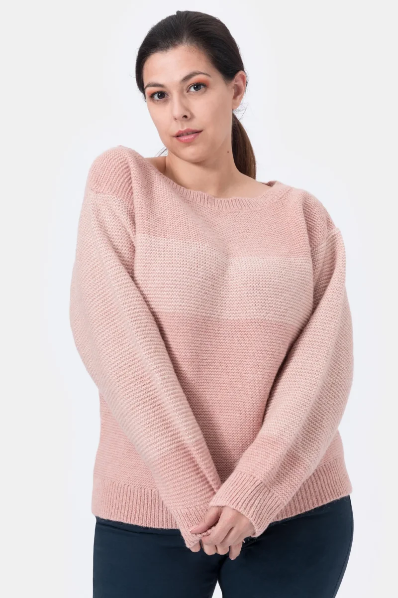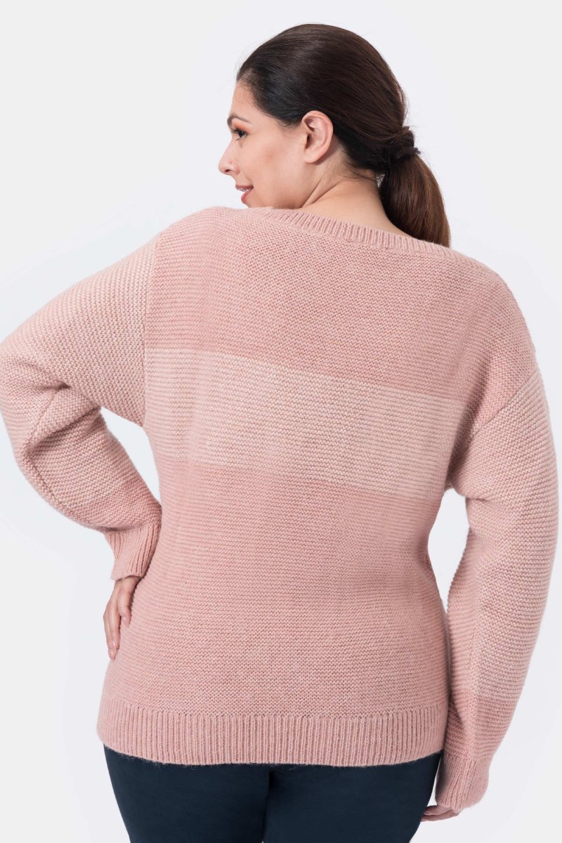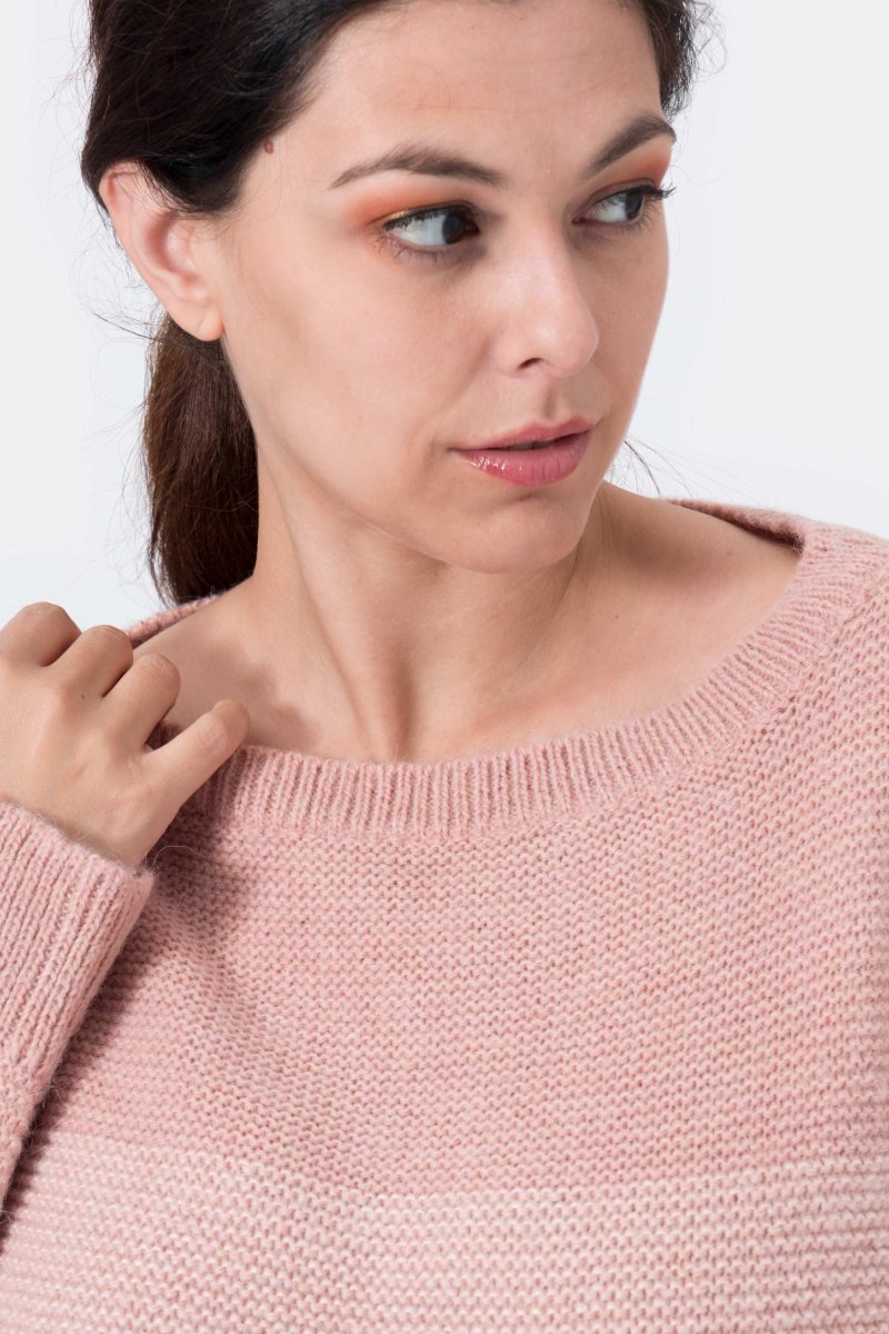 Olive Maglia bicolore girocollo in Lana e Alpaca Rosa
