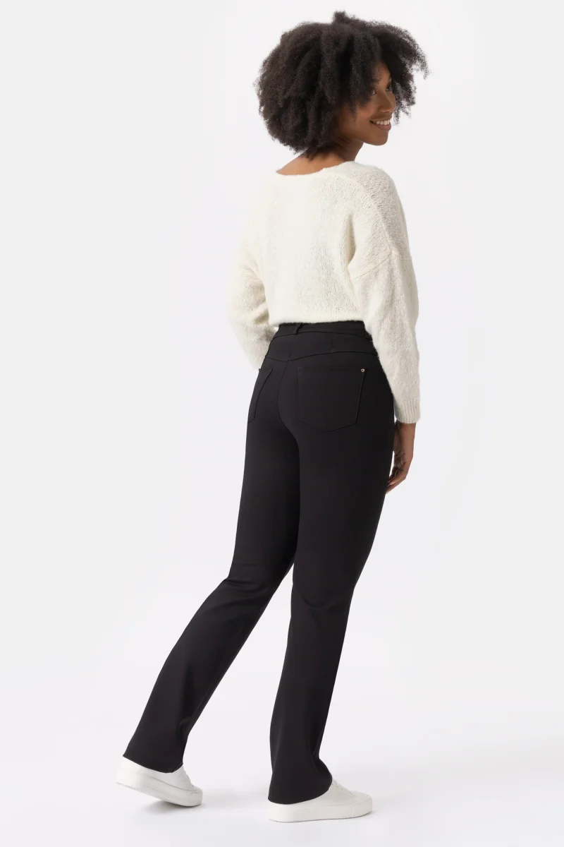 Pantalone punto milano con gamba dritta. Costruito con vita regolare ed elasticizzata, chiusura con zip e bottone. L’elastico in interno cintura regala un comfort assoluto. Caratterizzato da un taglio regolare che donano al pantalone un fit perfetto. Un Pantalone versatile e sfizioso per essere moderna e a tuo agio in ogni occasione.