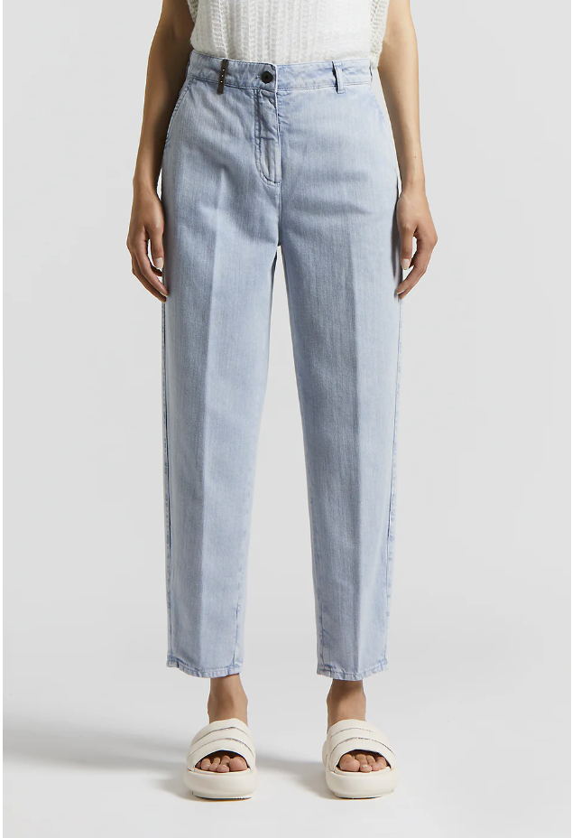 Peserico Denim carrot in boule di cotone – Azzurro Alba