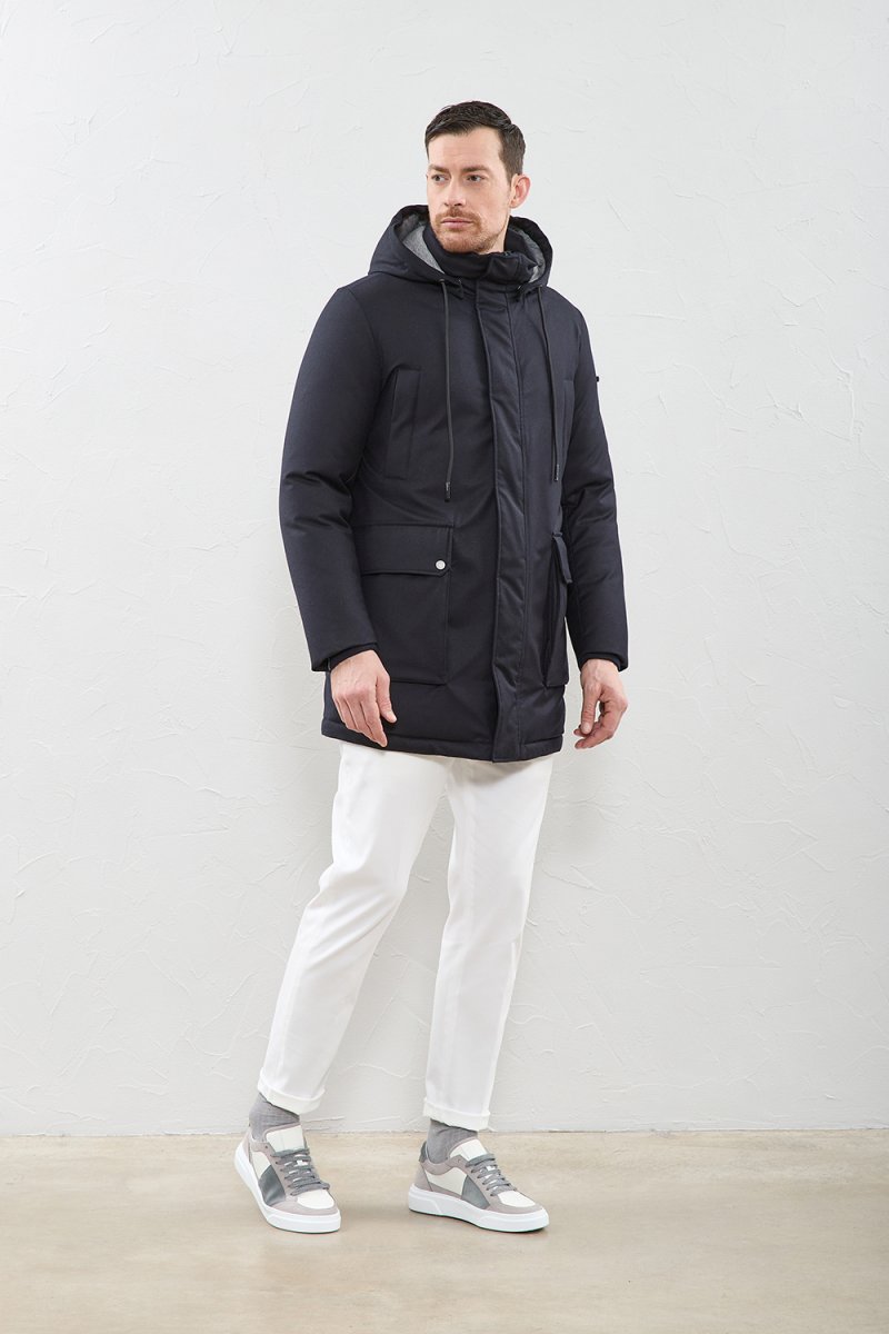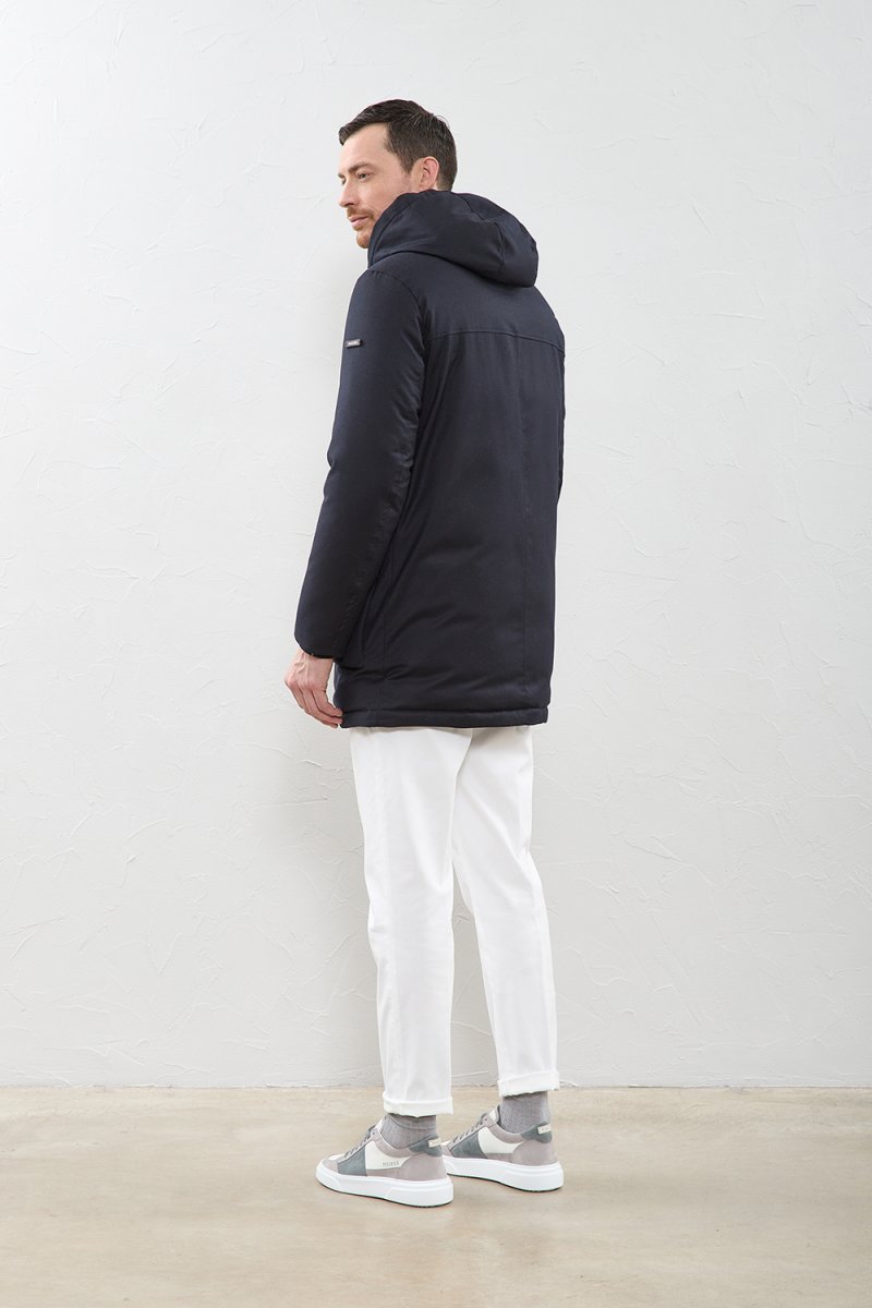 Peserico Giubbotto lungo imbottito in piuma d’Oca blu scuro