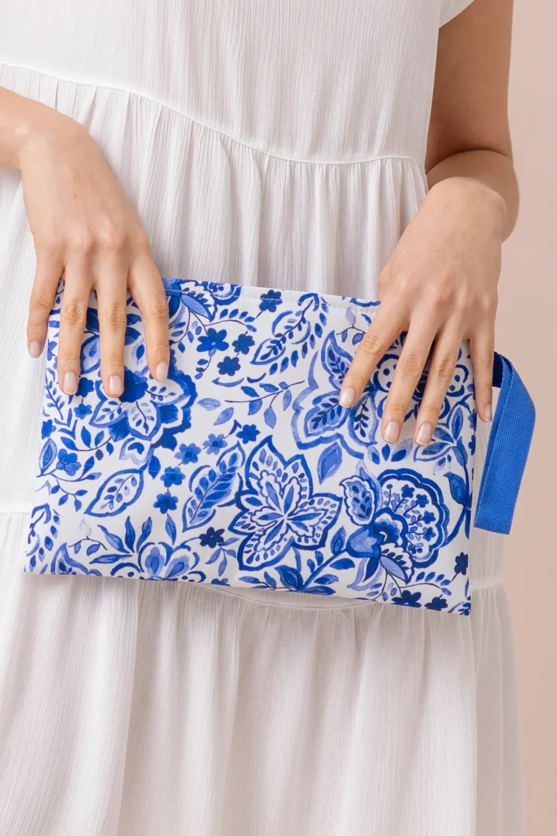 Pochette con chiusura a zip in stampa a fiori in misura30x20 cm, comoda e pratica รจ lโaccessorio perfetto per portare con te tutto il necessario