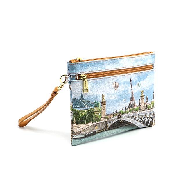 Pochette in goffrato multicolor, modello pratico e urban, da portare a mano o con il pratico polsino. Sulla collezione Yes Bag vengono rappresentate cittร italiane e internazionali attraverso istantanee e dettagli iconici. L’interno รจ foderato in tessuto loggato, 1 scomparto con tasche porta oggetti e con zip, 1 tasca esterna con zip per avere tutto a portata di mano.