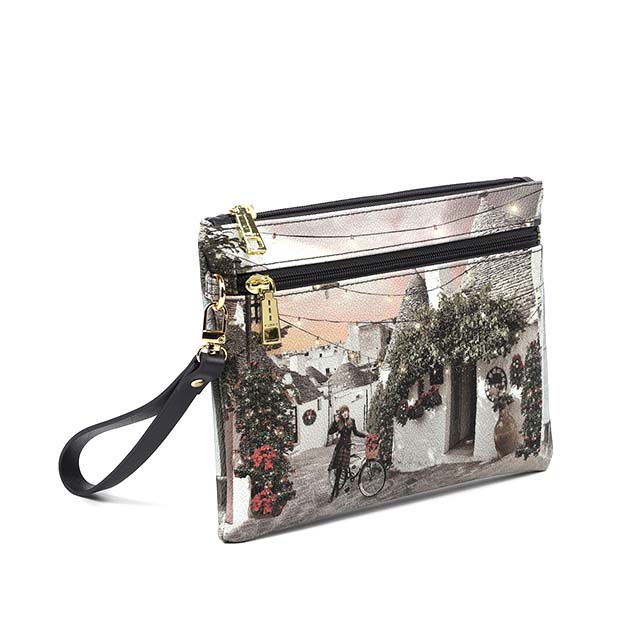 Pochette medium in goffrato multicolor, modello pratico e urban, da portare a mano o con il pratico polsino. Sulla collezione Yes Bag vengono rappresentate cittร italiane e internazionali attraverso istantanee e dettagli iconici. L’interno รจ foderato in tessuto loggato, 1 scomparto con tasche porta oggetti e con zip, 1 tasca esterna con zip per avere tutto a portata di mano.