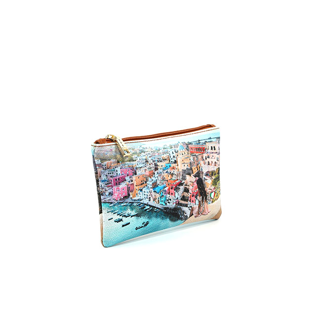 Pochettina da borsa in goffrato multicolorย pratica e alla moda. Sulla collezione Yes Bag vengono rappresentate cittร italiane e internazionali attraverso istantanee e dettagli iconici. L’interno foderato in tessuto, all’interno 1 scomparto. Chiusura con zip.