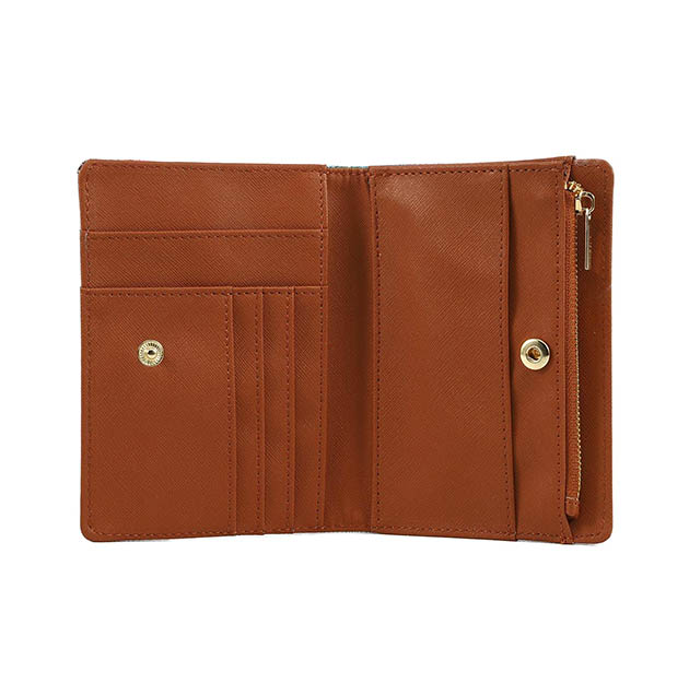 Portacarte e portamonete Donna in goffrato multicolor, con apertura a libro e chiusura con bottone a pressione e una tasca esterna . All’interno 5 fessure portatessere, 2 tasche portadocumenti e portamonete con zip.