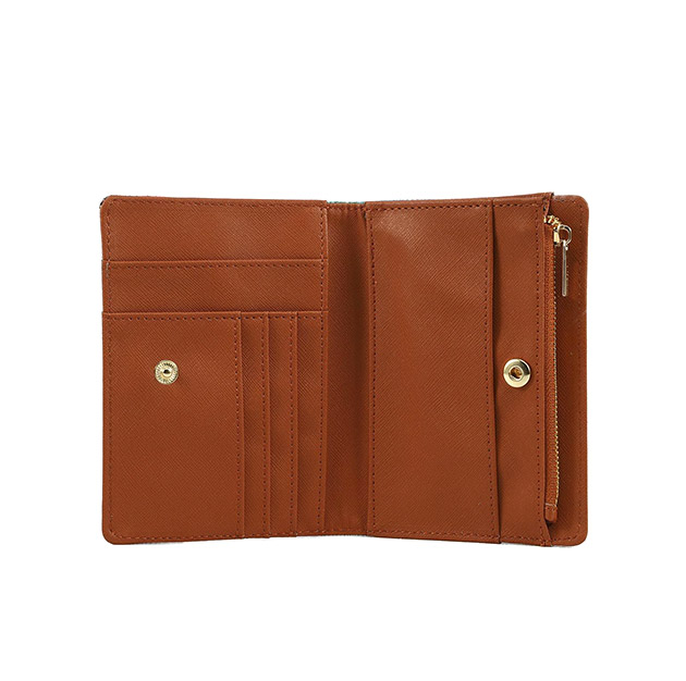 Portacarte e portamonete Donna in goffrato multicolor, con apertura a libro e chiusura con bottone a pressione e una tasca esterna . All’interno 5 fessure portatessere, 2 tasche portadocumenti e portamonete con zip.