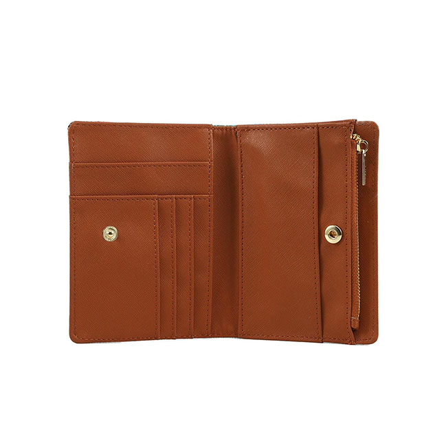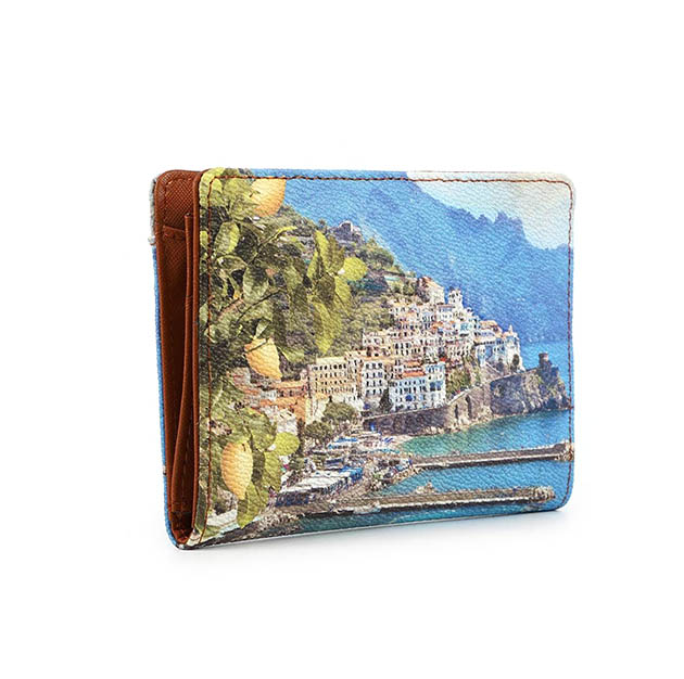 Portacarte e portamonete Donna in goffrato multicolor, con apertura a libro e chiusura con bottone a pressione e una tasca esterna . All’interno 5 fessure portatessere, 2 tasche portadocumenti e portamonete con zip.